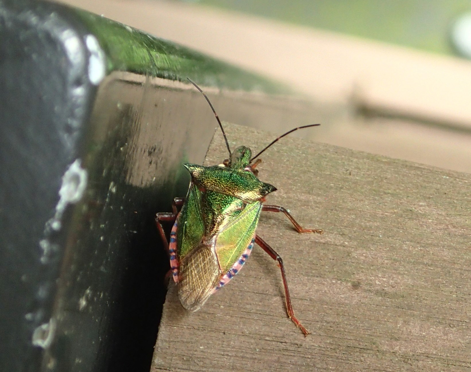 肉食のカメムシ、アオクチブトカメムシ。