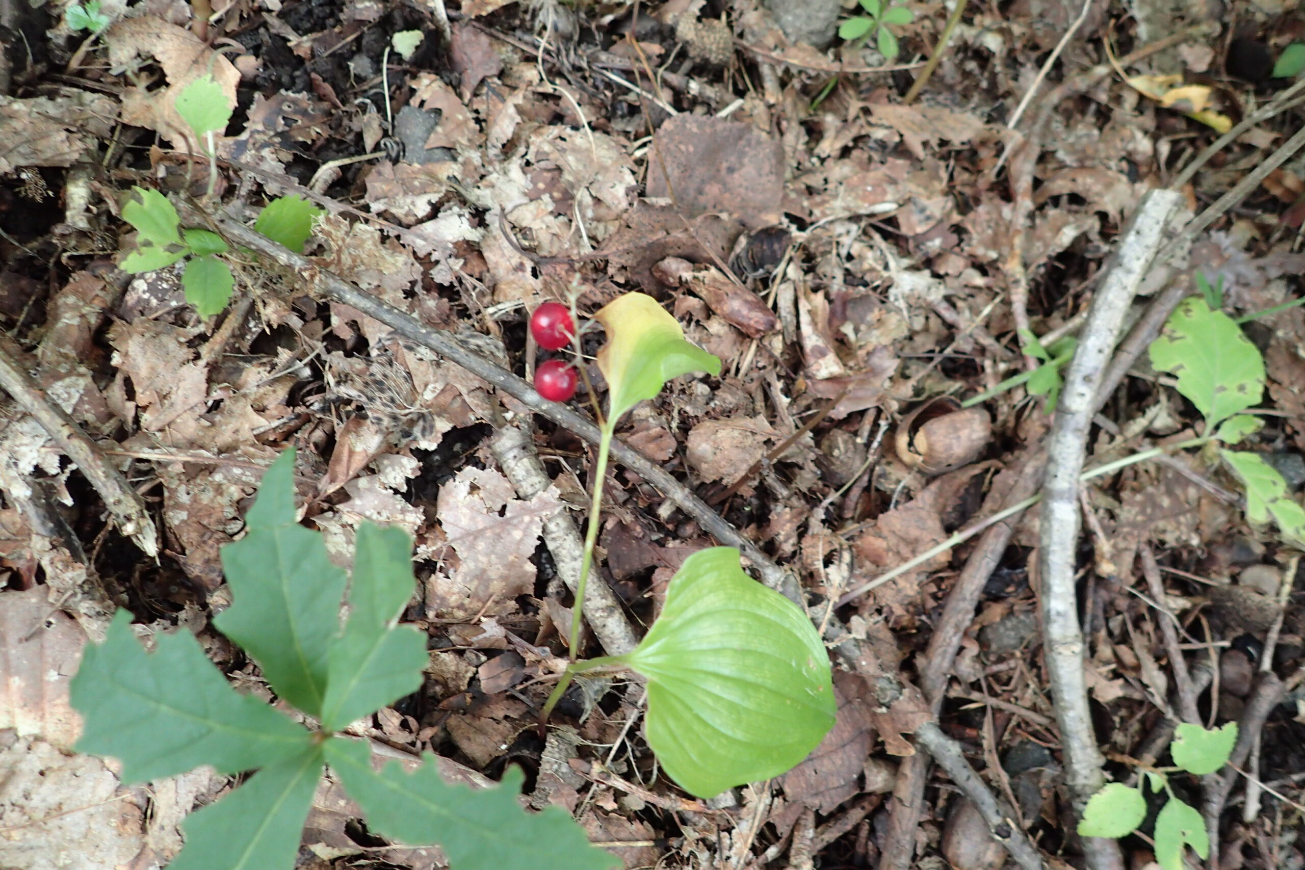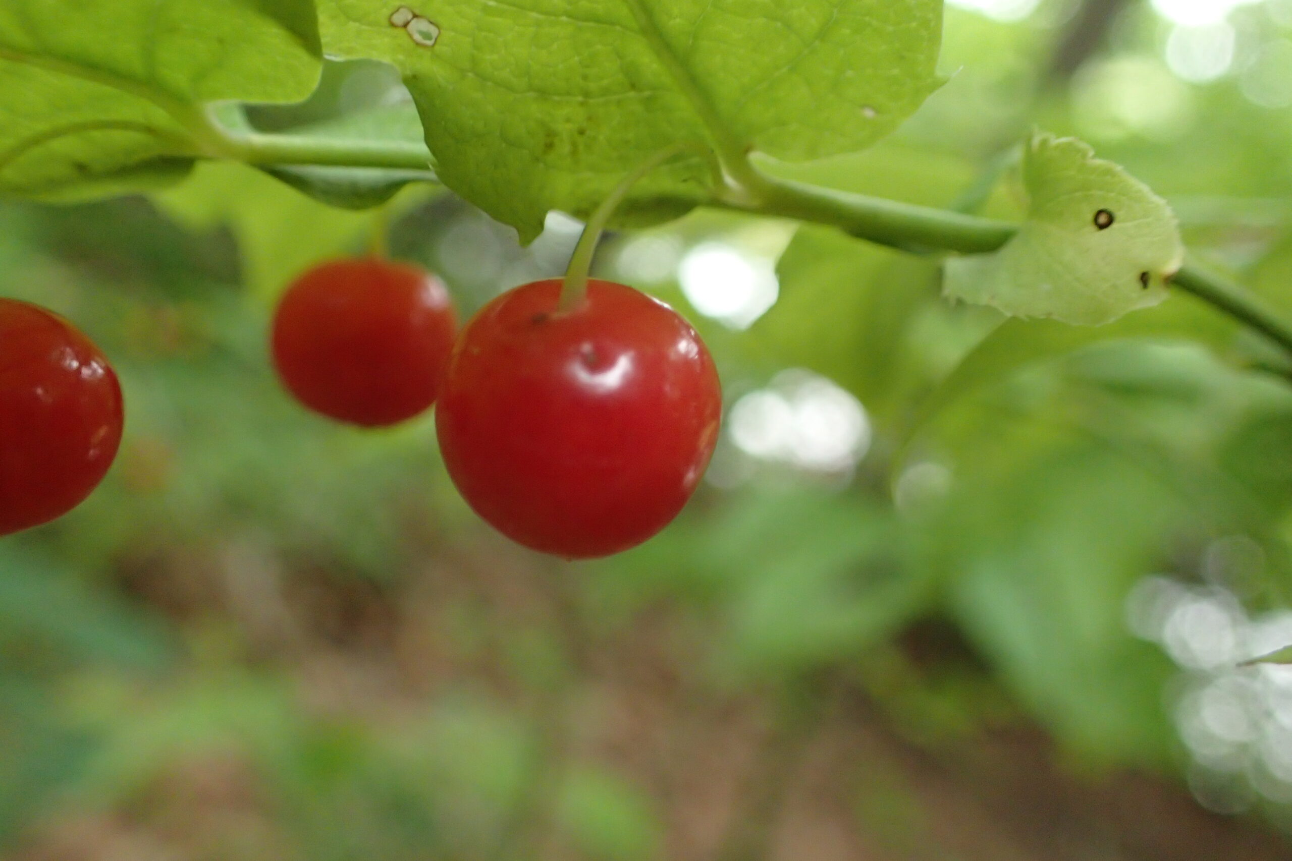 マイヅルソウの果実は、ルビーのような、透明感のある深いレッドが素敵です。