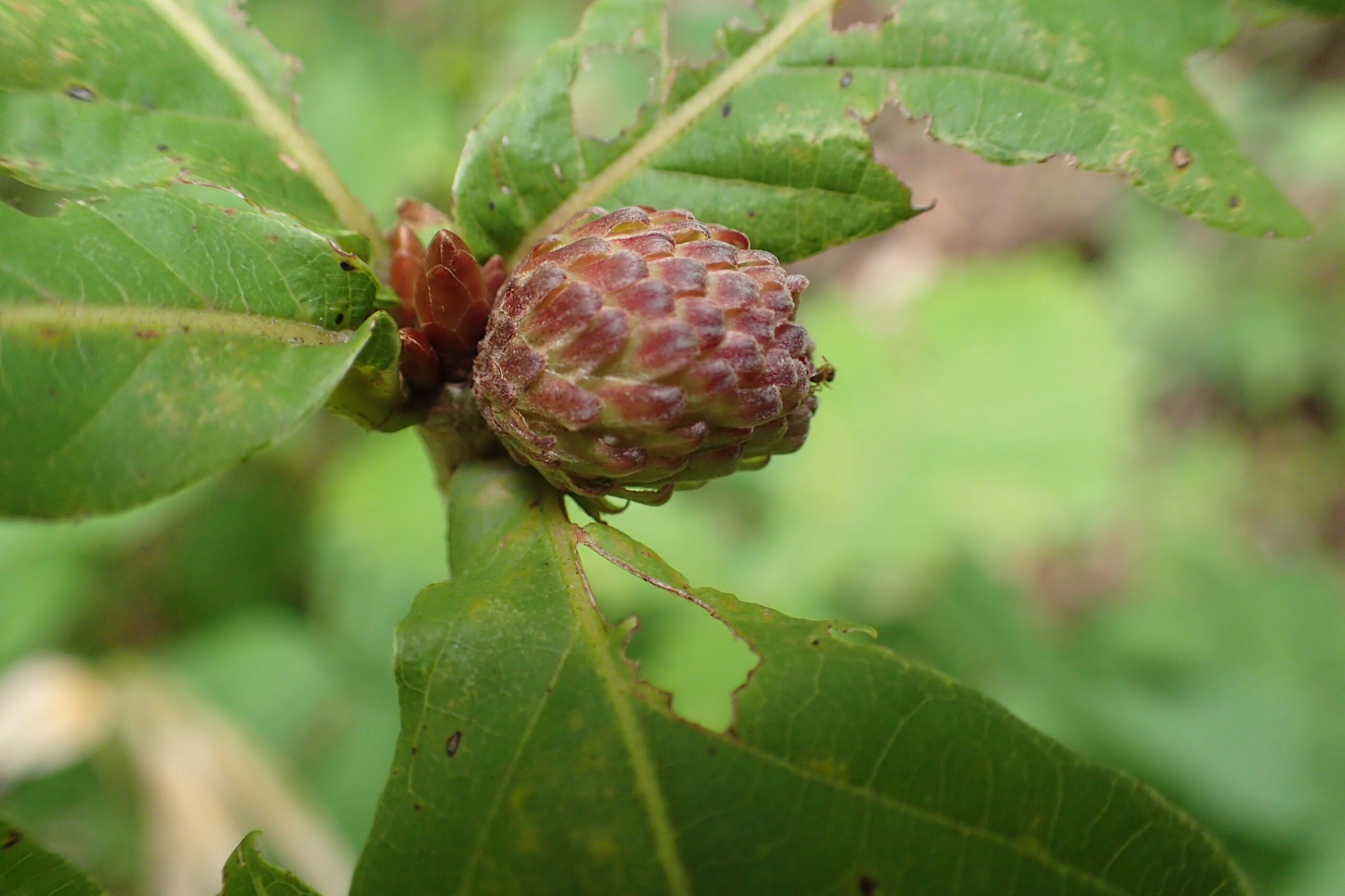 ミズナラの芽に付いたうろこのような虫こぶなので「ミズナラメウロコタマフシ」といいます。