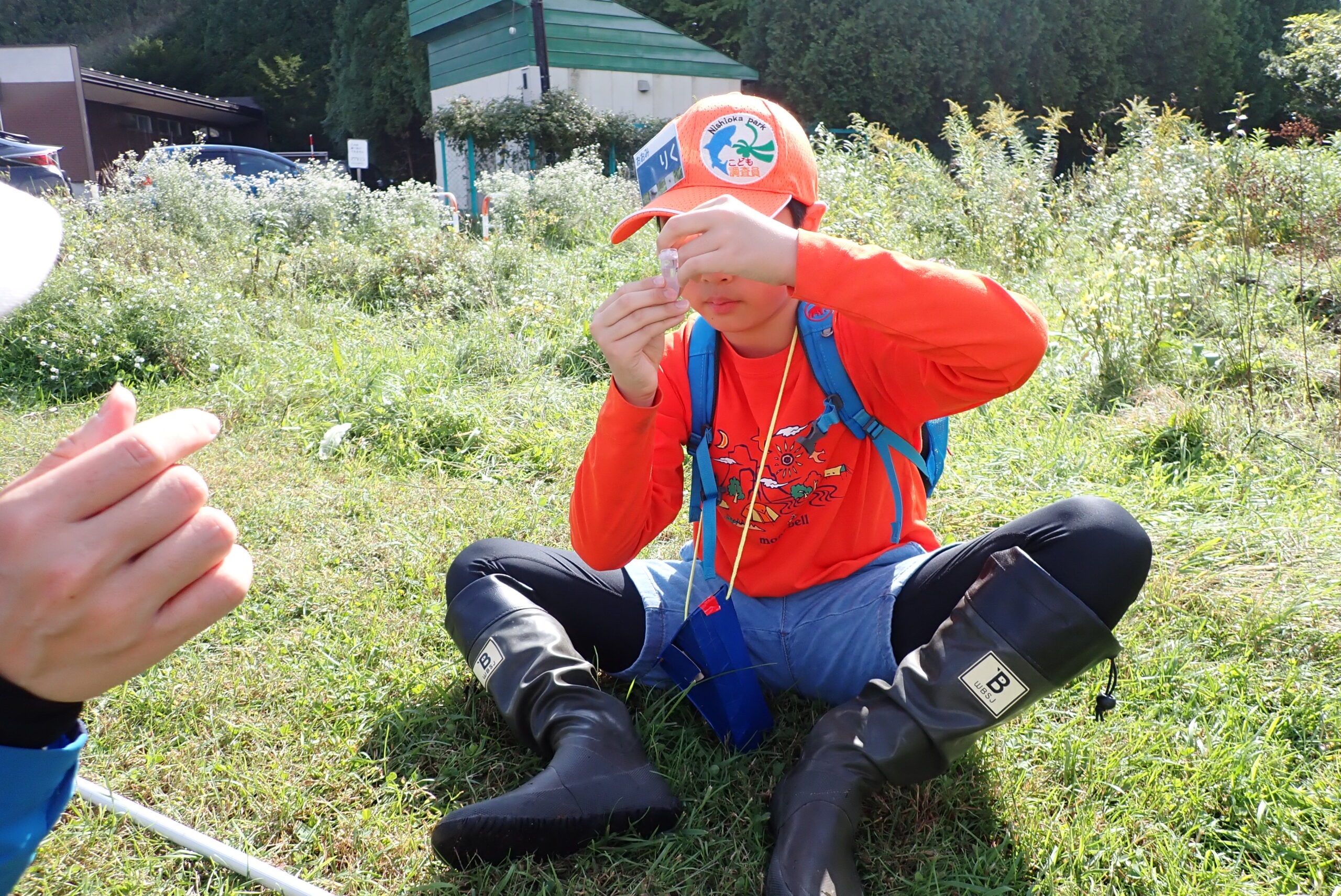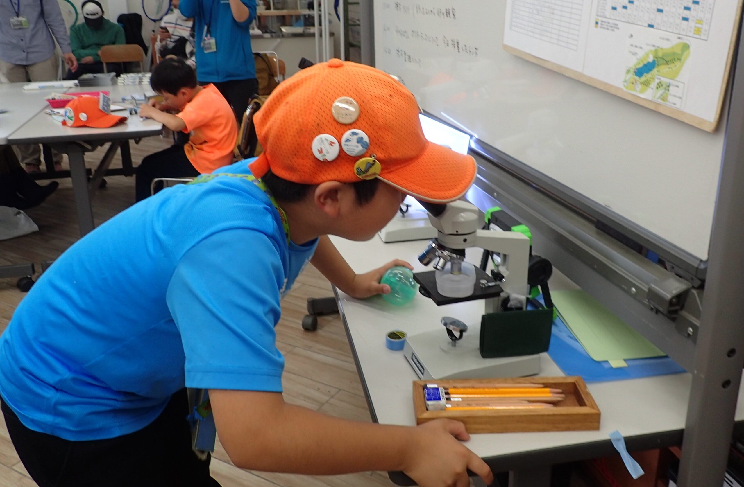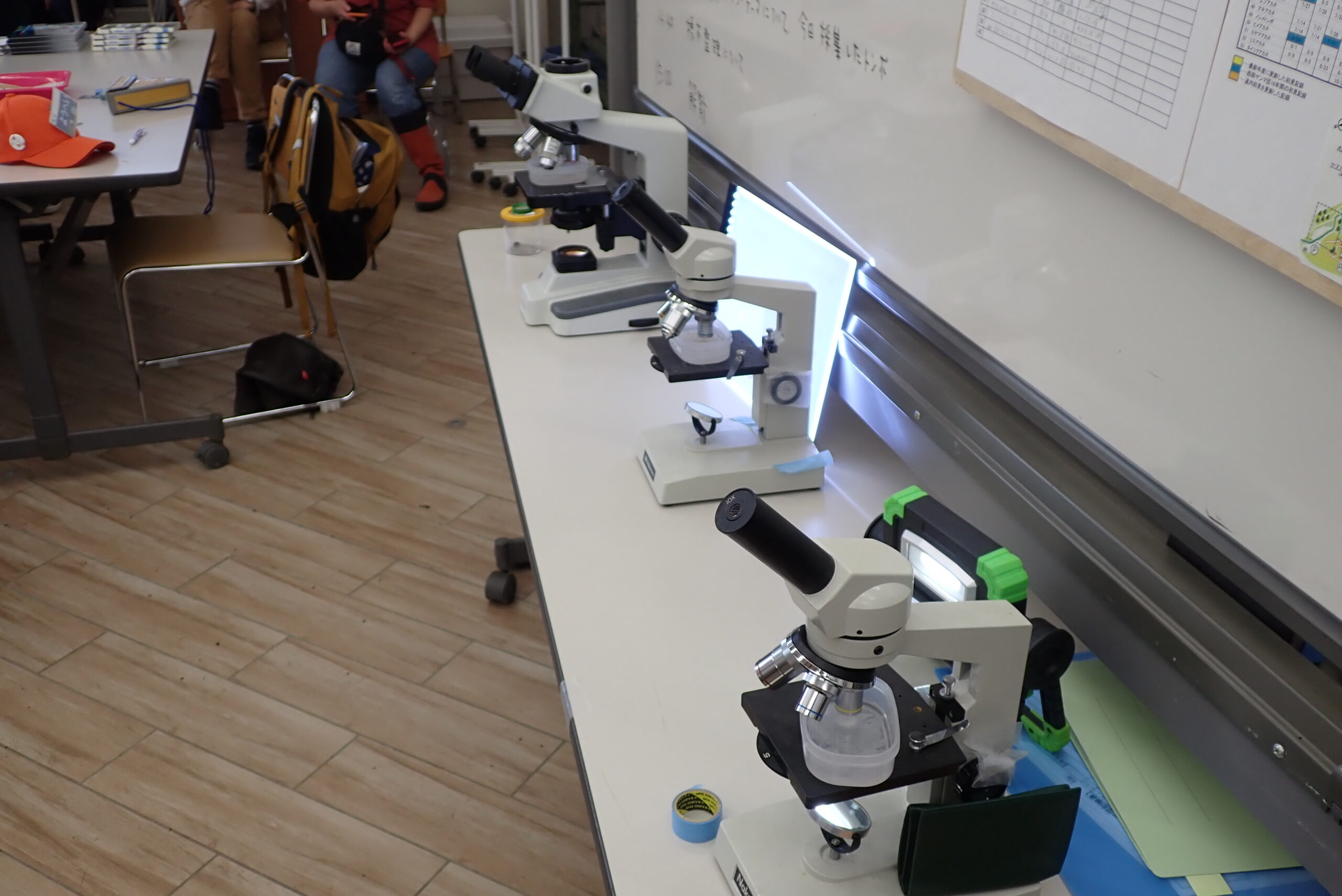 午後からは、採集したトンボの卵を顕微鏡で観察しました。