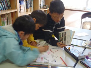 入団式の後は、分布調査のポイントに立てる看板を作りました。