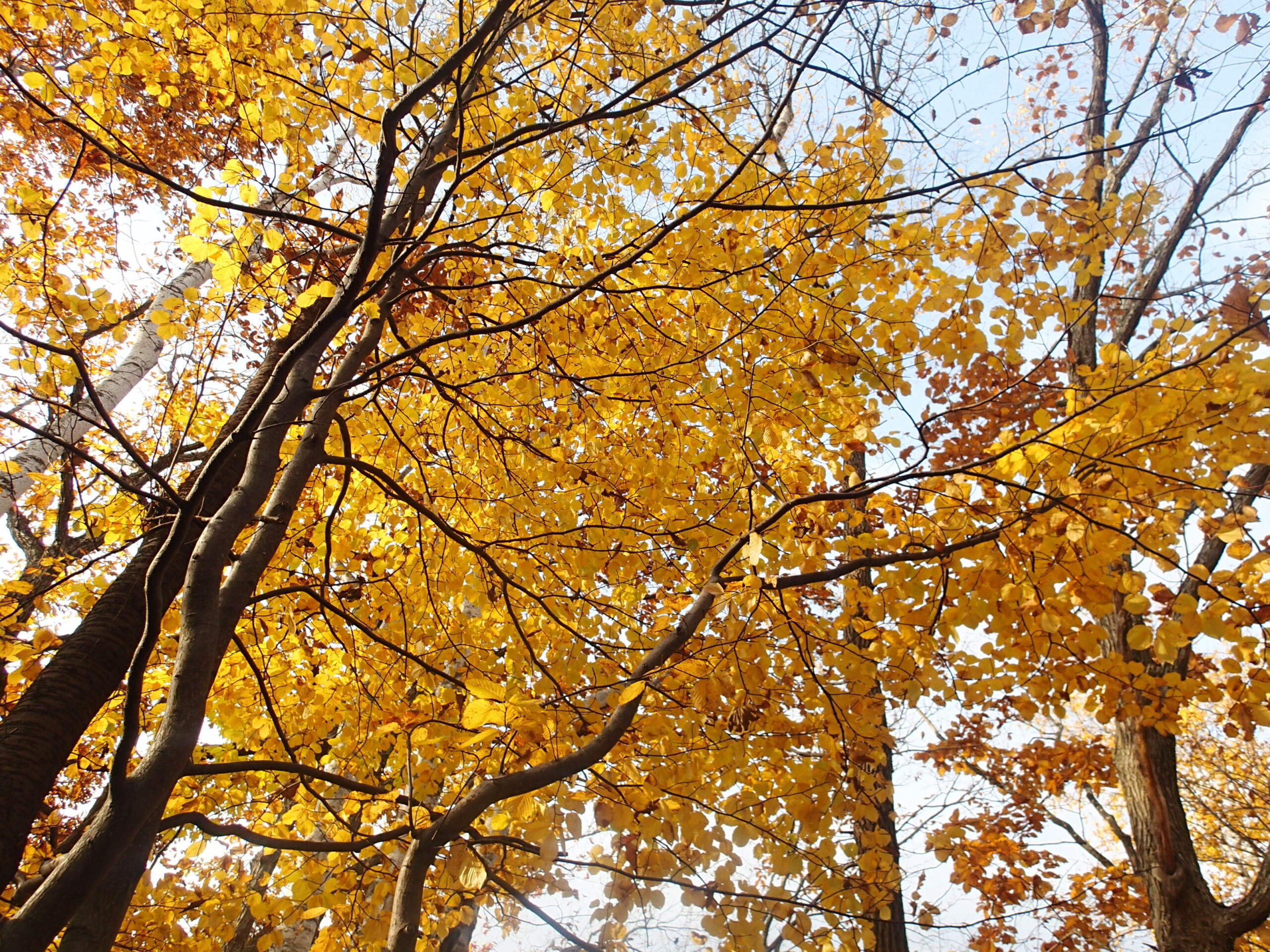 ハルニレや、イタヤカエデ、シラカンバ、などの葉が黄色く色づきました。