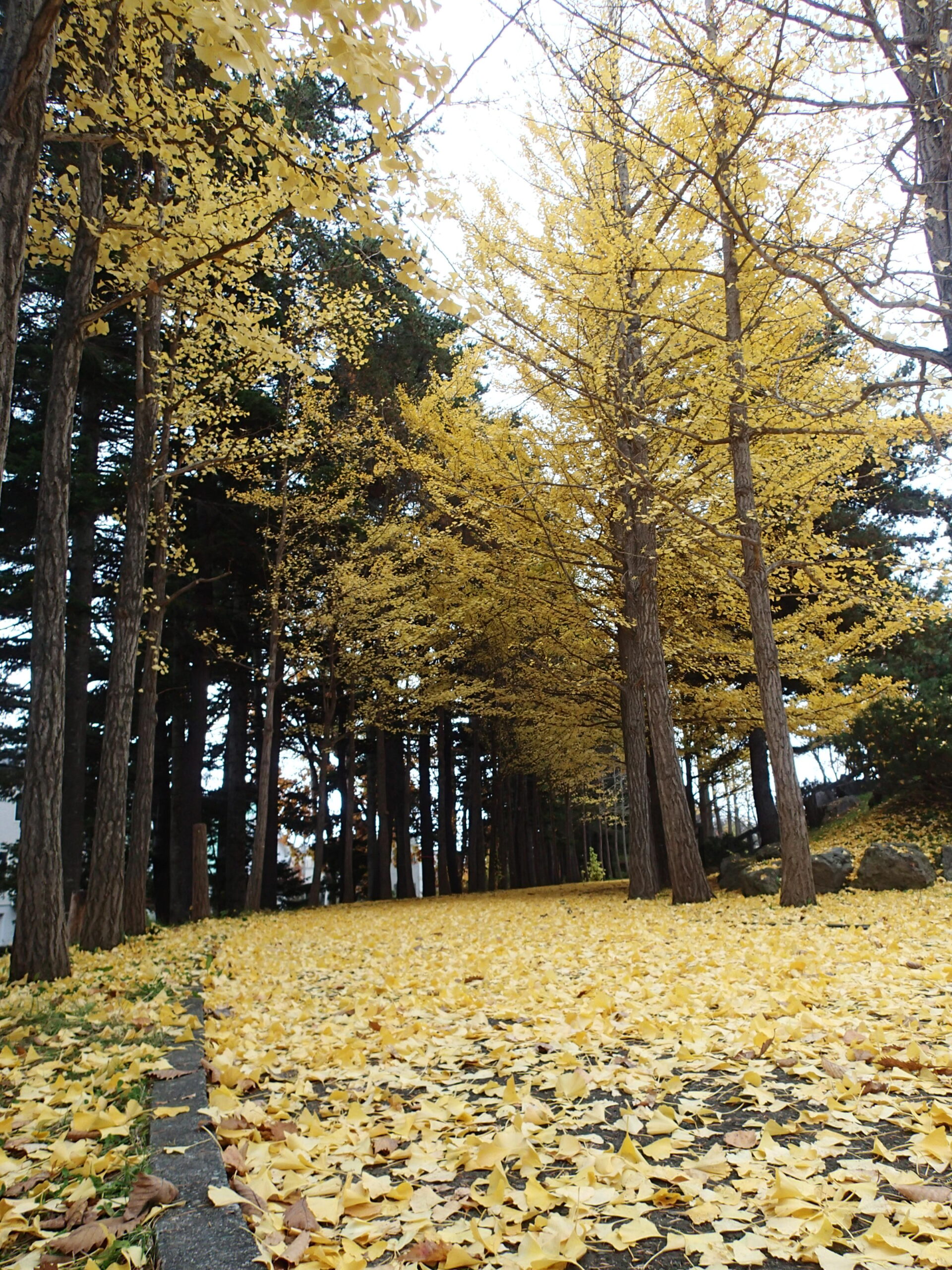 イチョウの並木の足元には落ち葉が敷き詰められて、黄色い絨毯のようです。