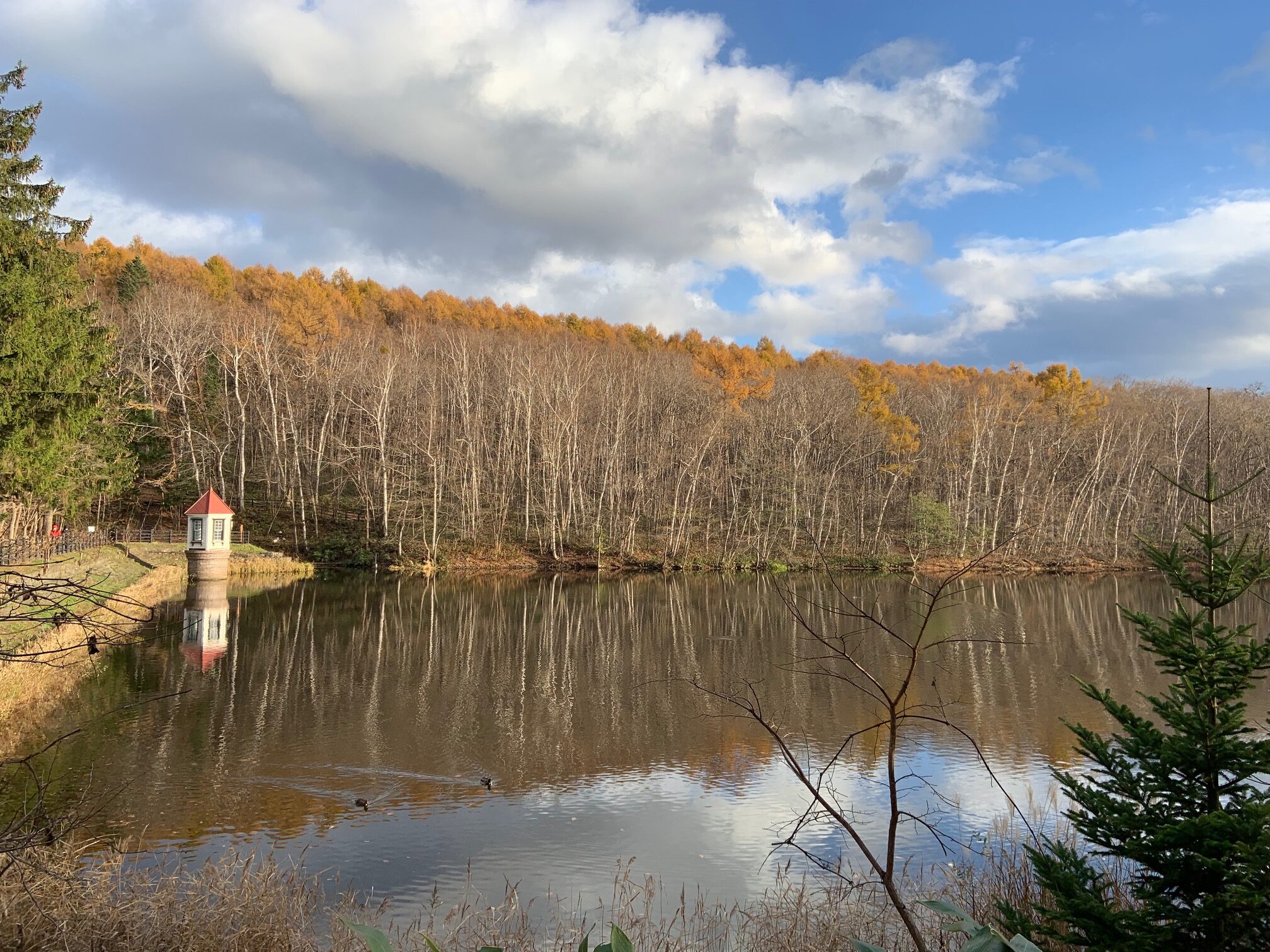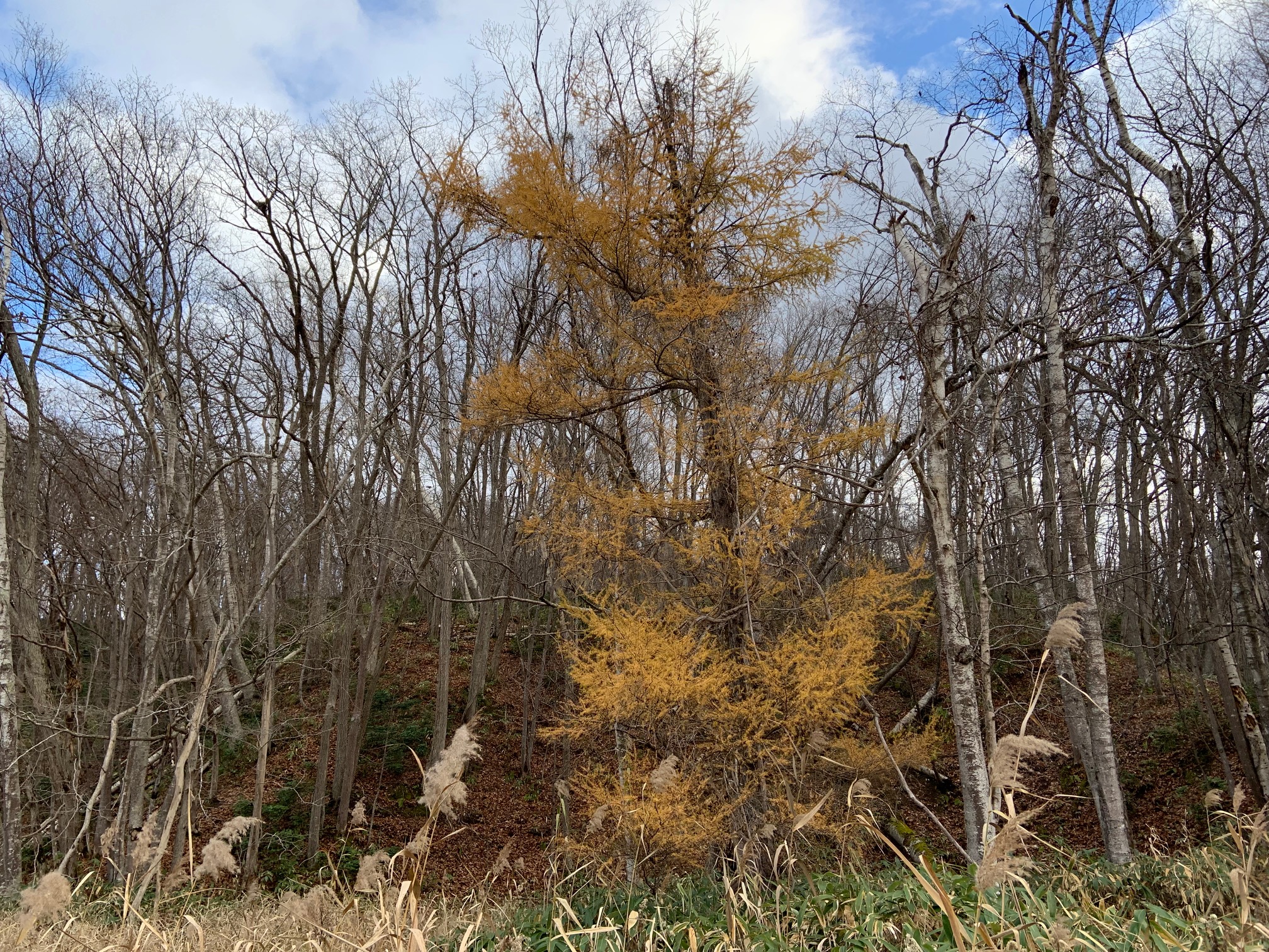 他の樹木が落葉したので、最後には、黄色く紅葉したカラマツが目立ちます。