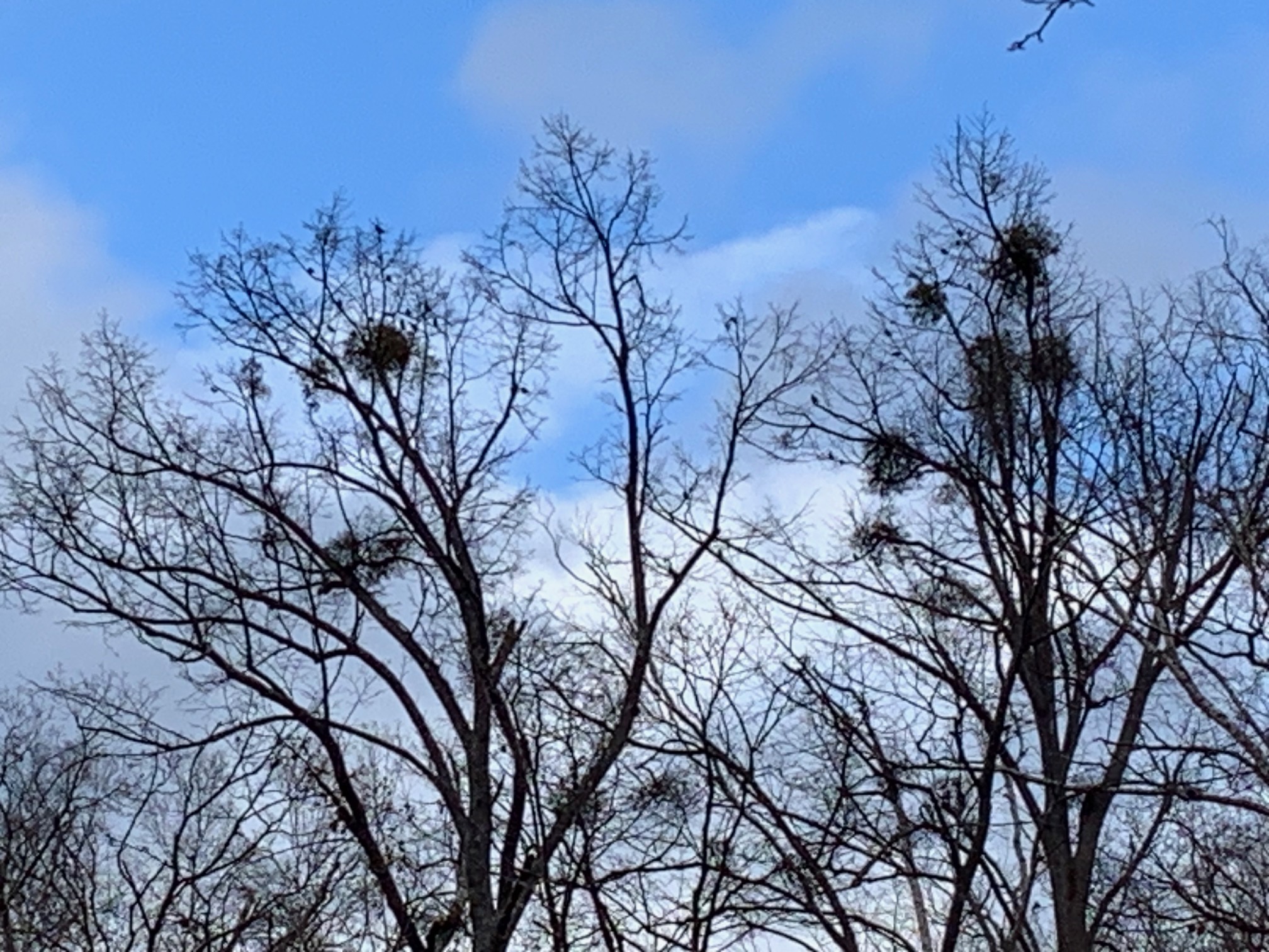 園内にはいたるところに、ヤドリギ(樹木の枝に寄生する植物)があります。