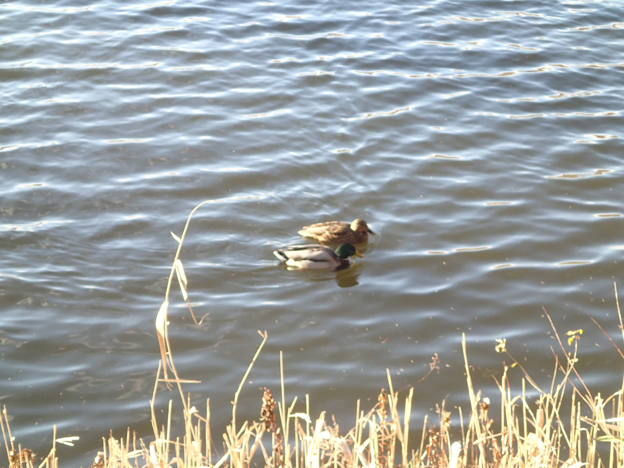 カワアイサや、カイツブリは潜水して餌を採っています。