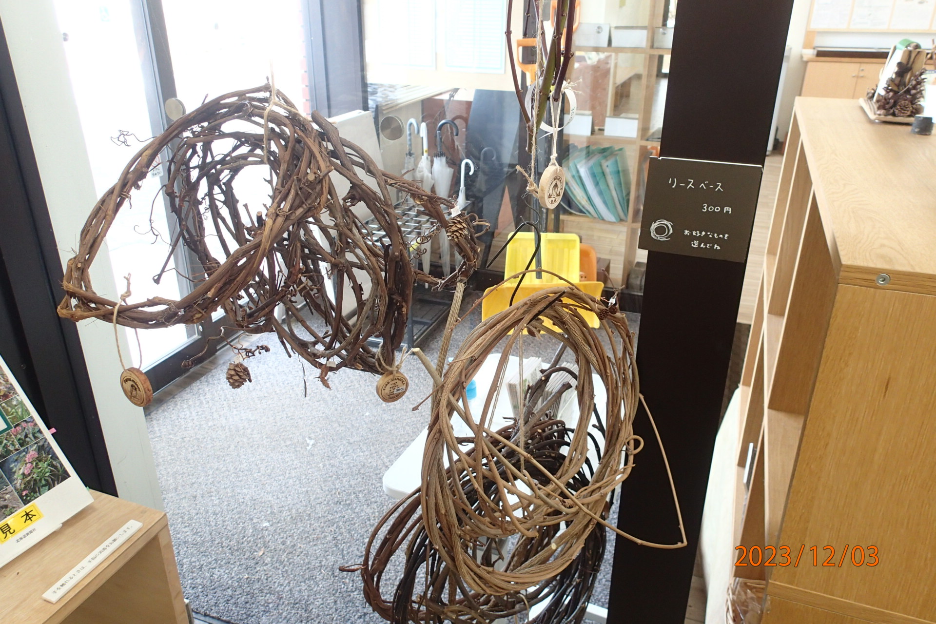 西岡公園の管理事務所の販売コーナーでは、クリスマスリースの販売を始めましたよ。
