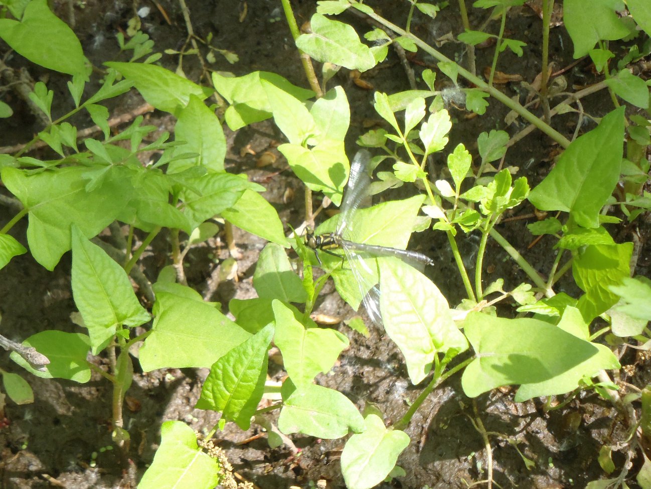 トンボシーズン到来です! 5月26日ころから羽化が始まり、現在までにホンサナエ・モイワサナエ・ シオヤトンボ・ヨツボシトンボ・ニホンカワトンボが確認されました。 写真は、モイワサナエ。5月30日に湿原で羽化したばかりの羽を乾かしている ところをみつけました。