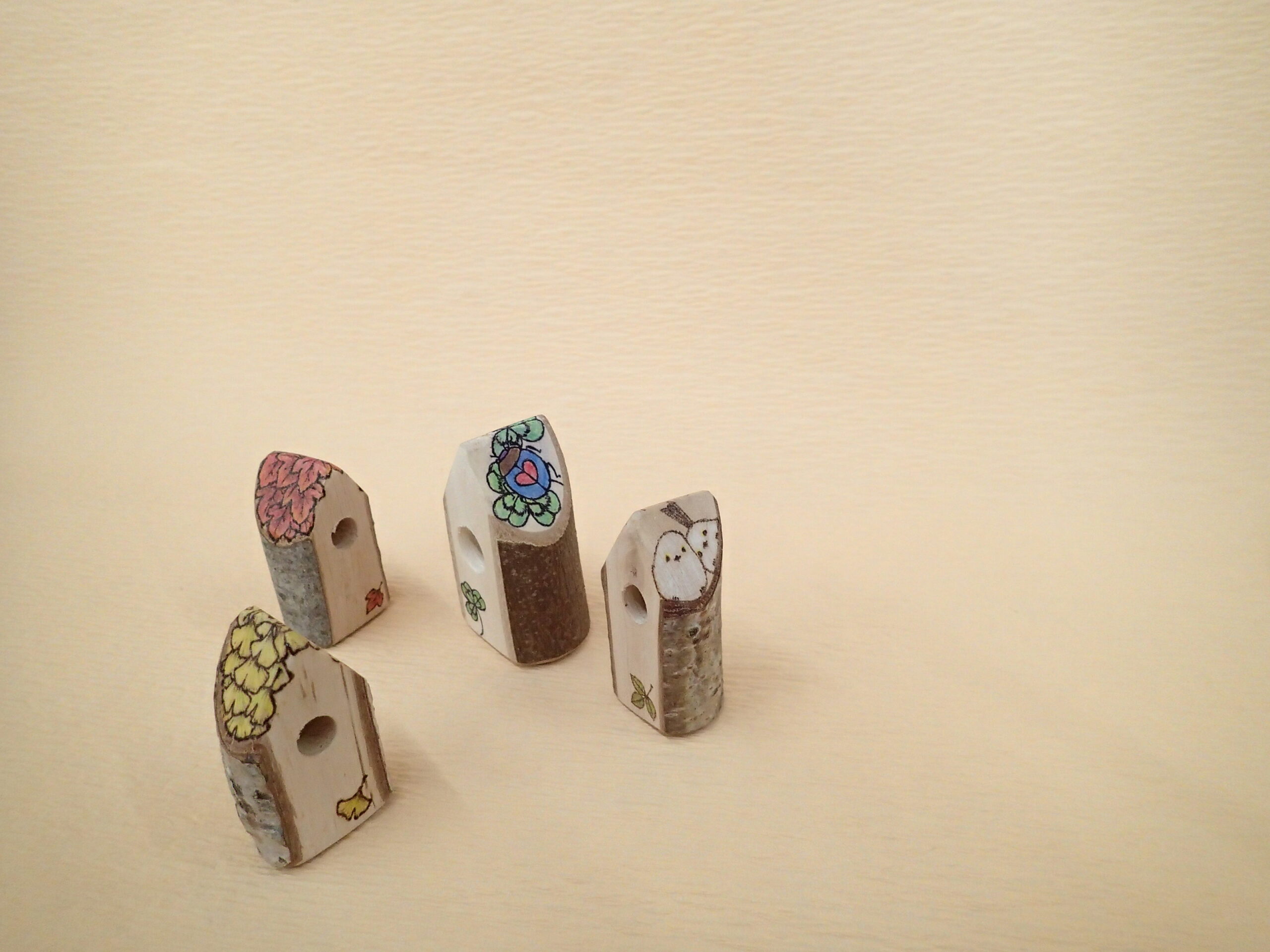 屋根にカラフルな模様が描かれた小鳥の家(100円)