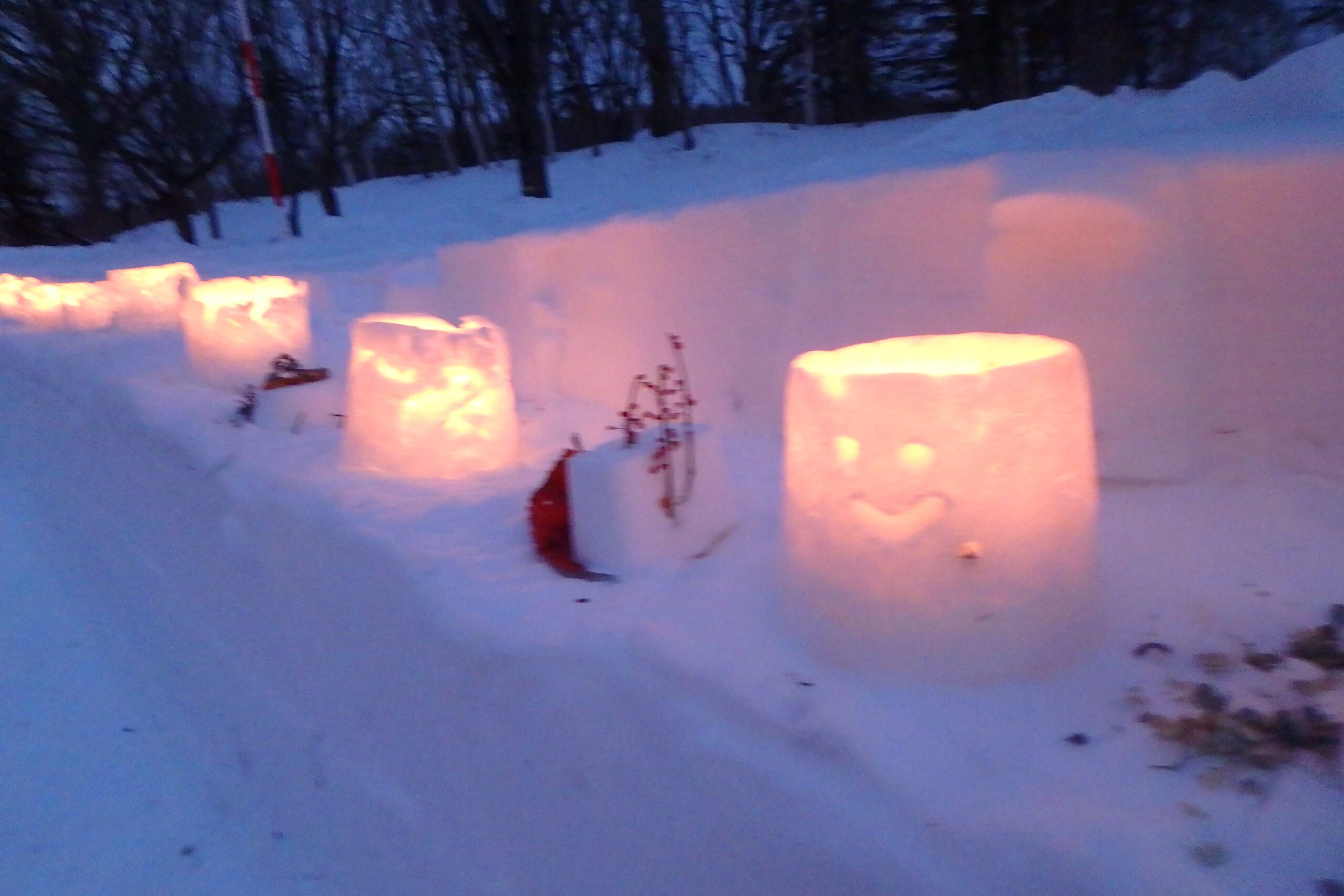 風が強すぎる日には、雪の回廊に穴をあけて、そこにロウソクを灯す工夫をしたこともありましたよ。