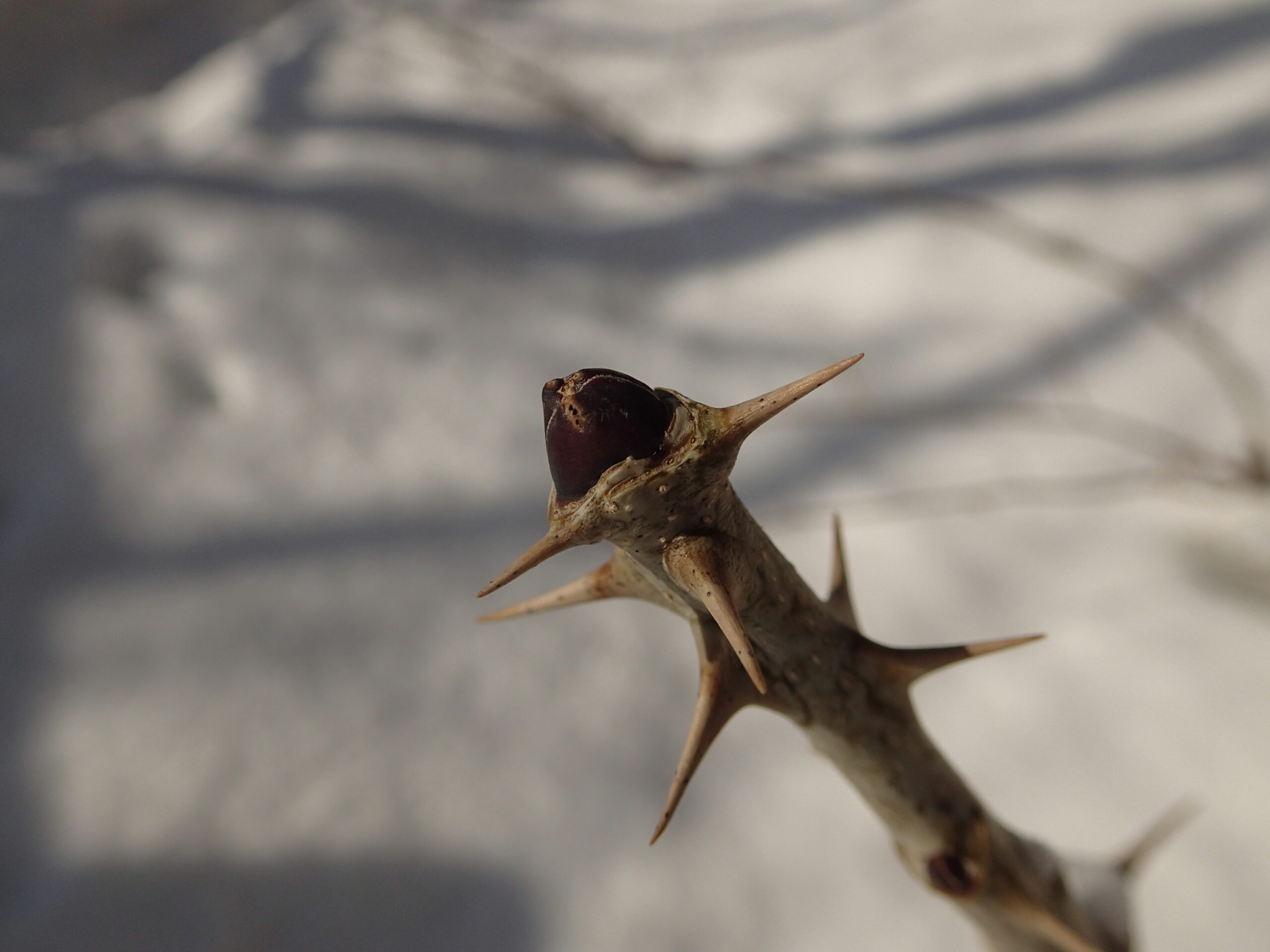 ハリギリは大きな冬芽です。枝のトゲもよく目立ちます。