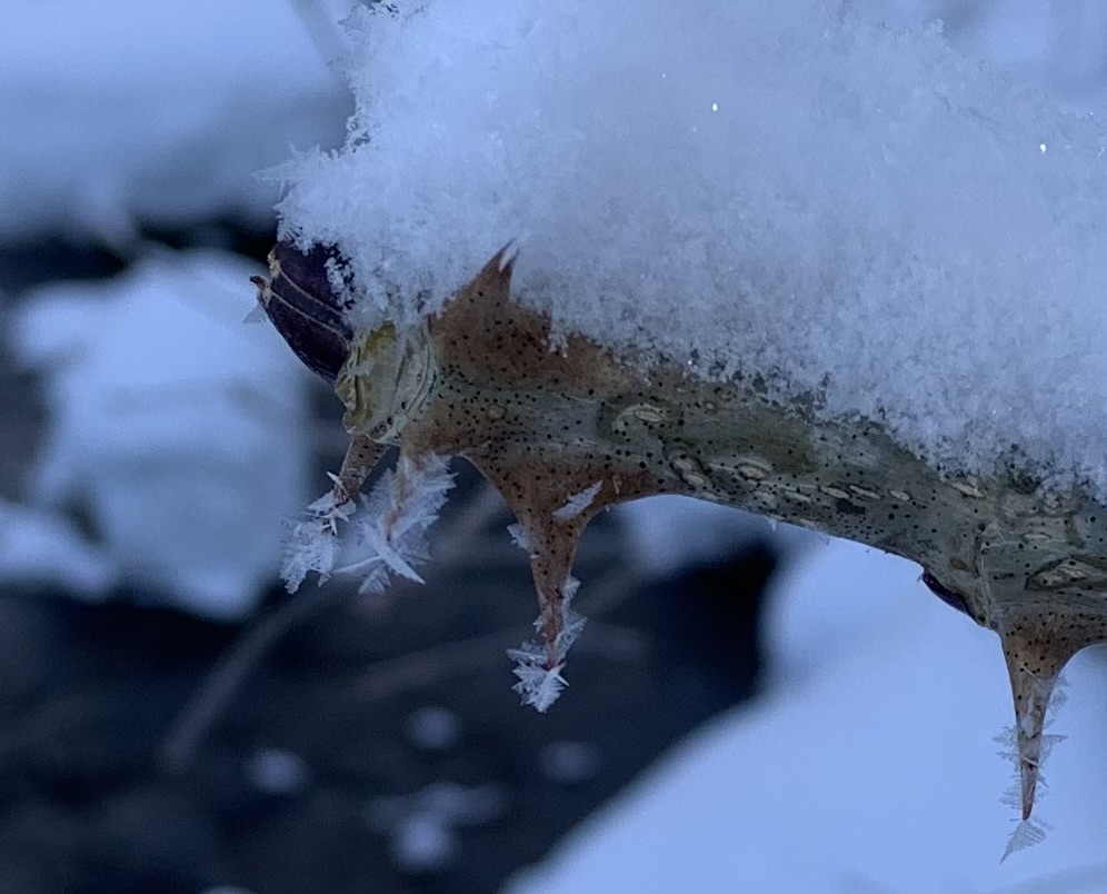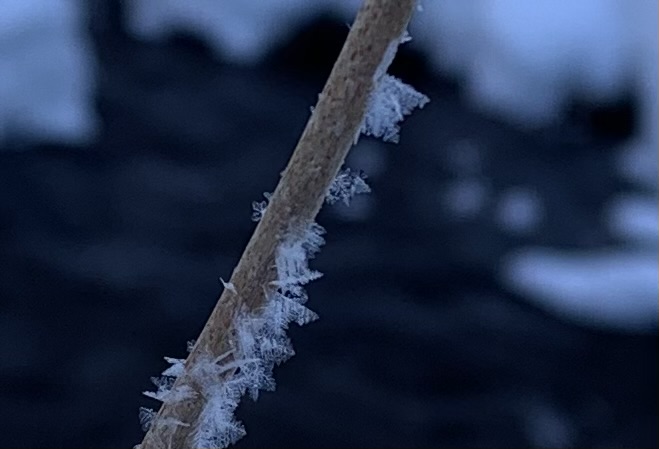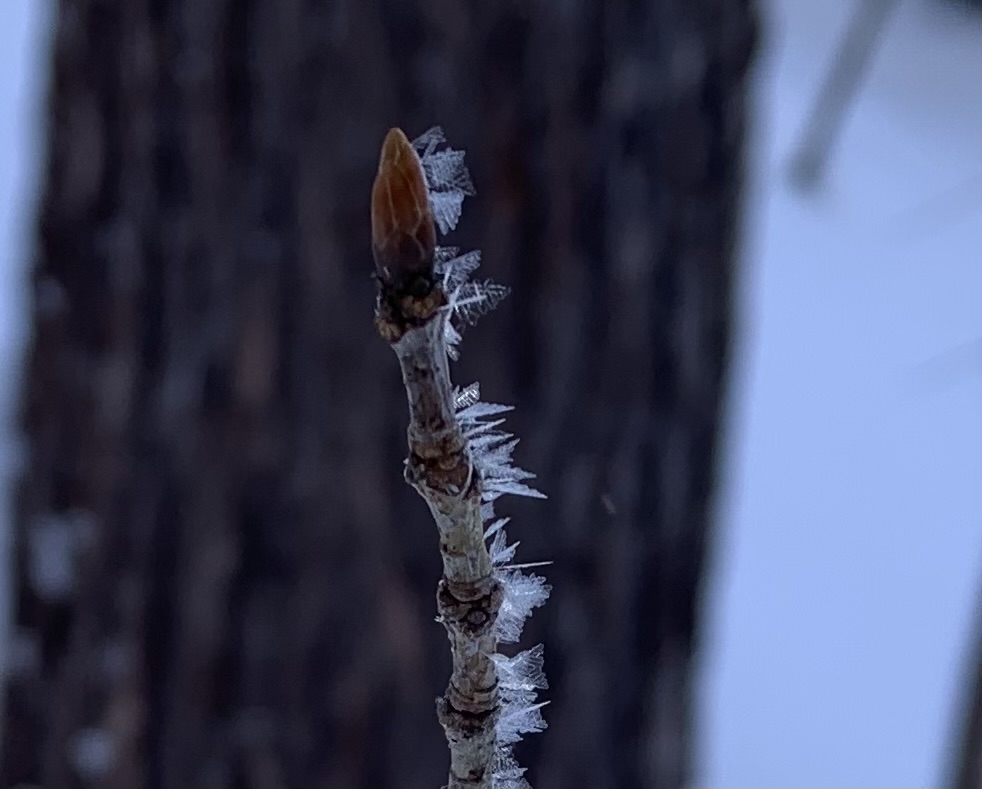樹霜は夜間、放射冷却した樹木などの表面に空気中の水蒸気が昇華して氷の結晶となって付着したものですよ。