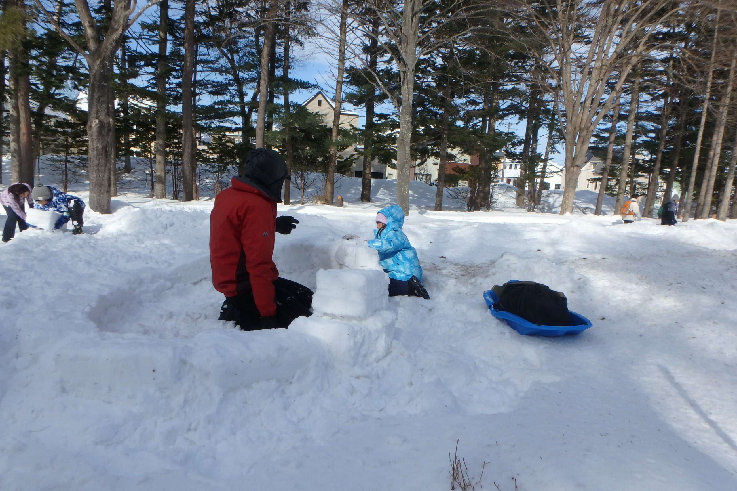 西岡公園では、「ゆきのおうち」の「イグルー」を作るイベントがありましたよ。
