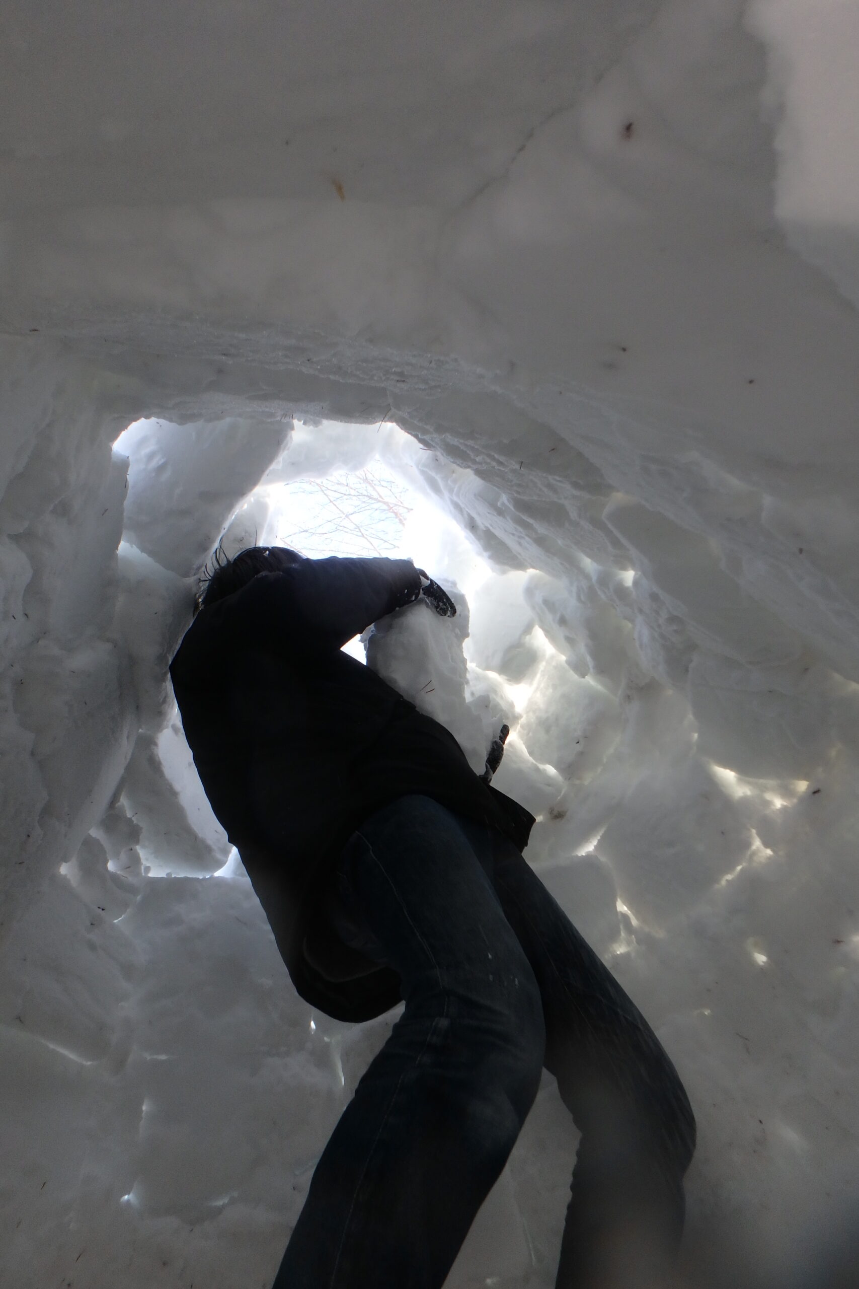 雪の壁に出入口を作りました。