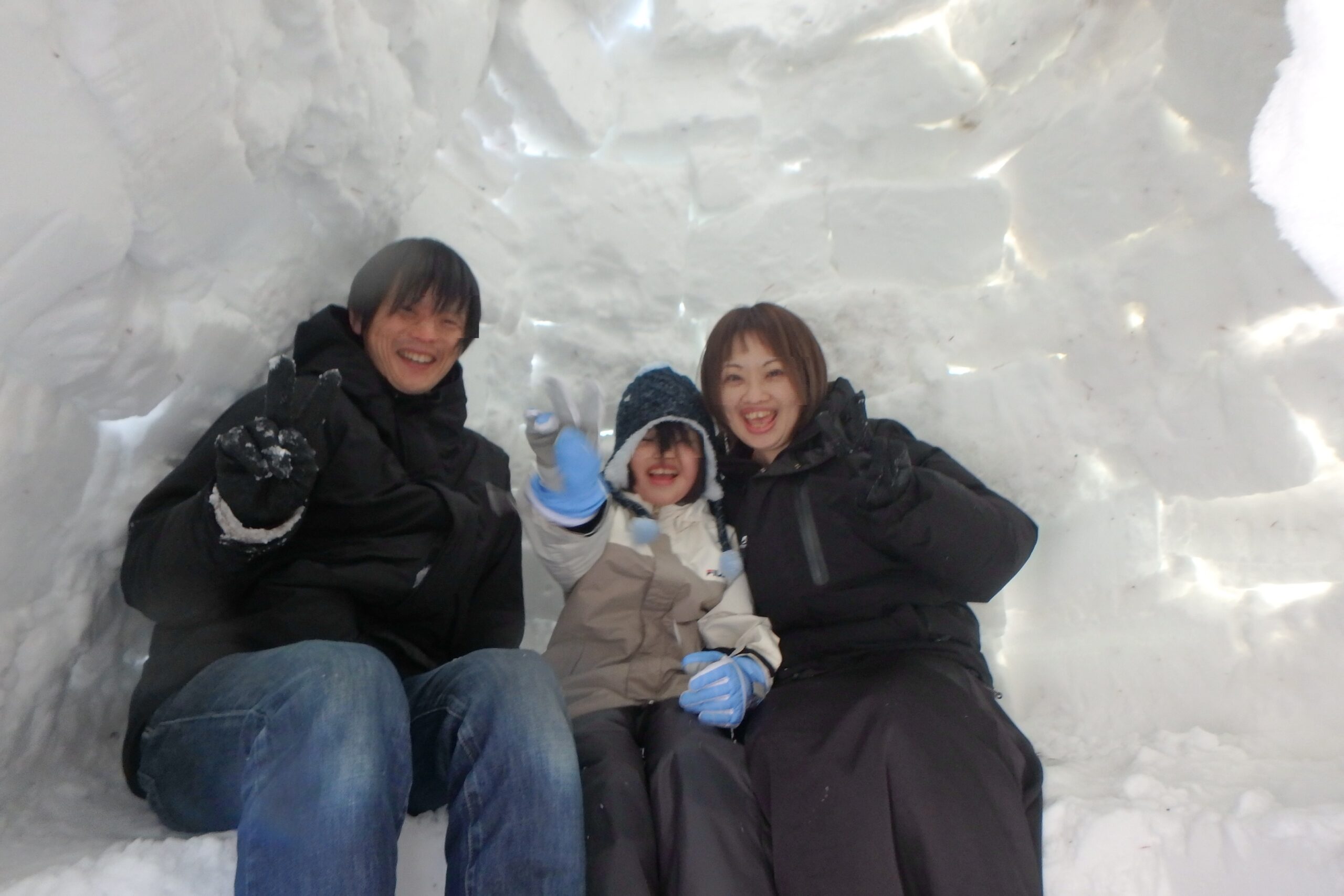 お昼ご飯をイグルーの中で食べる姿もありましたよ。