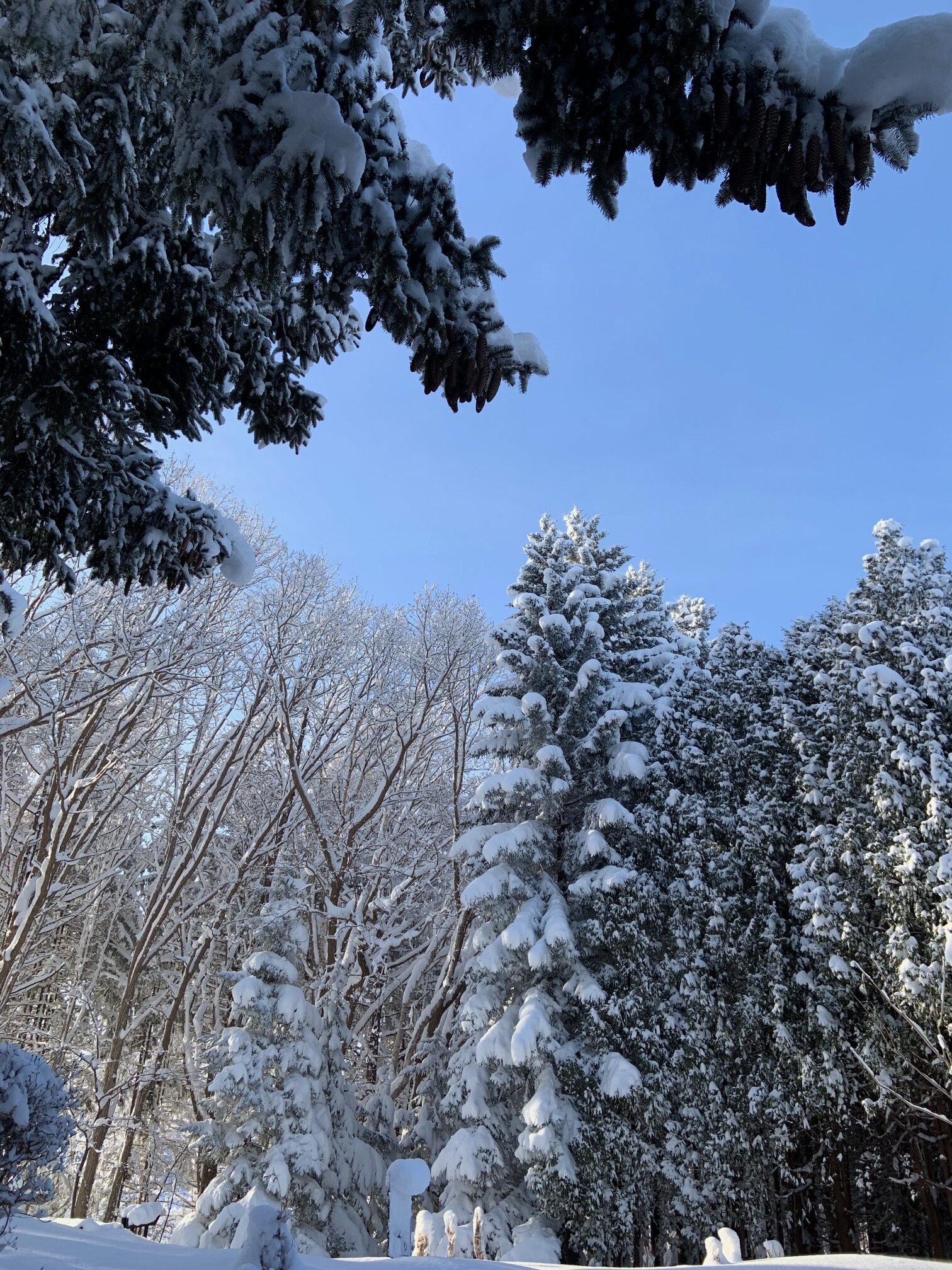 針葉樹にのたっぷり雪が積もり北国らしい風景です。