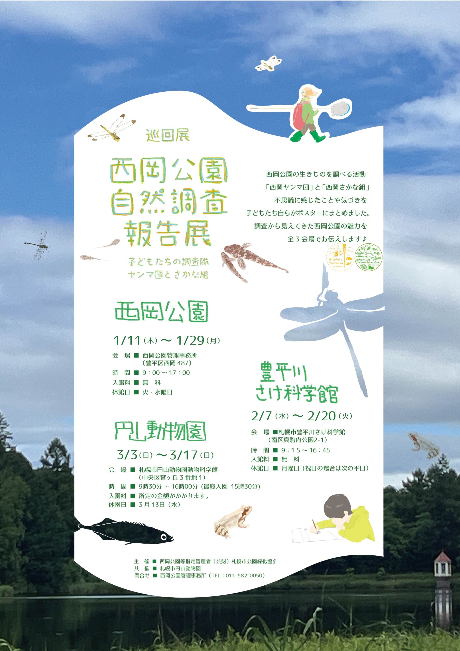 春から秋にかけて西岡公園で自然調査を実施していた子どもたちによる自然調査隊(ヤンマ団・さかな組)の活動報告展を今年度も開催しています。