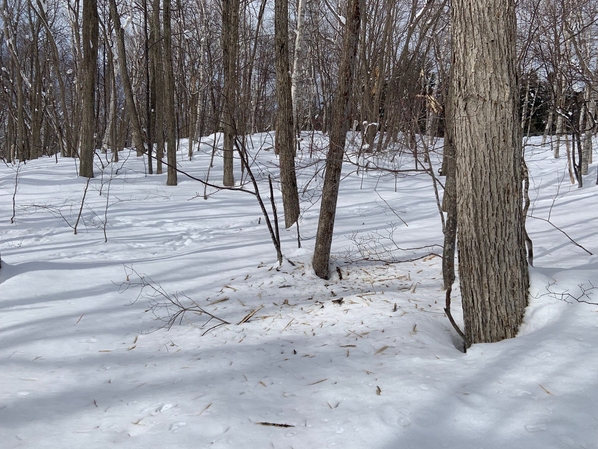 雪の上に木片が散乱していました。