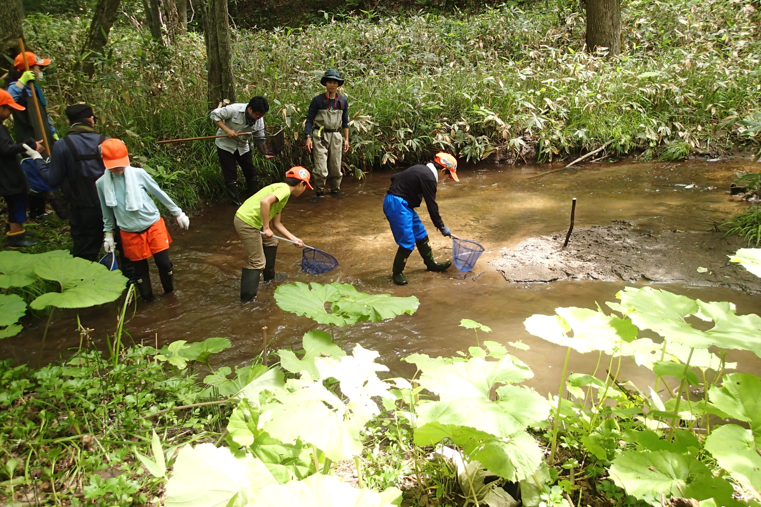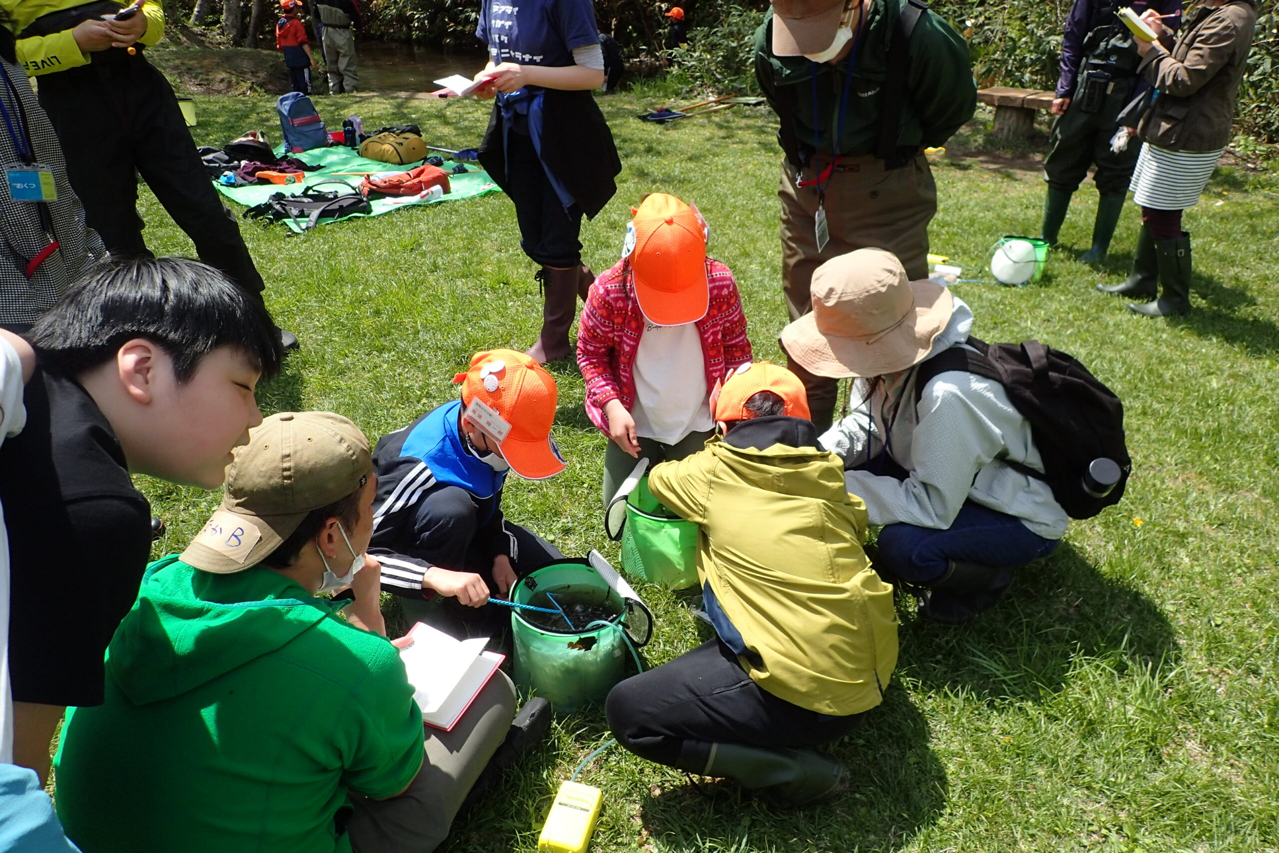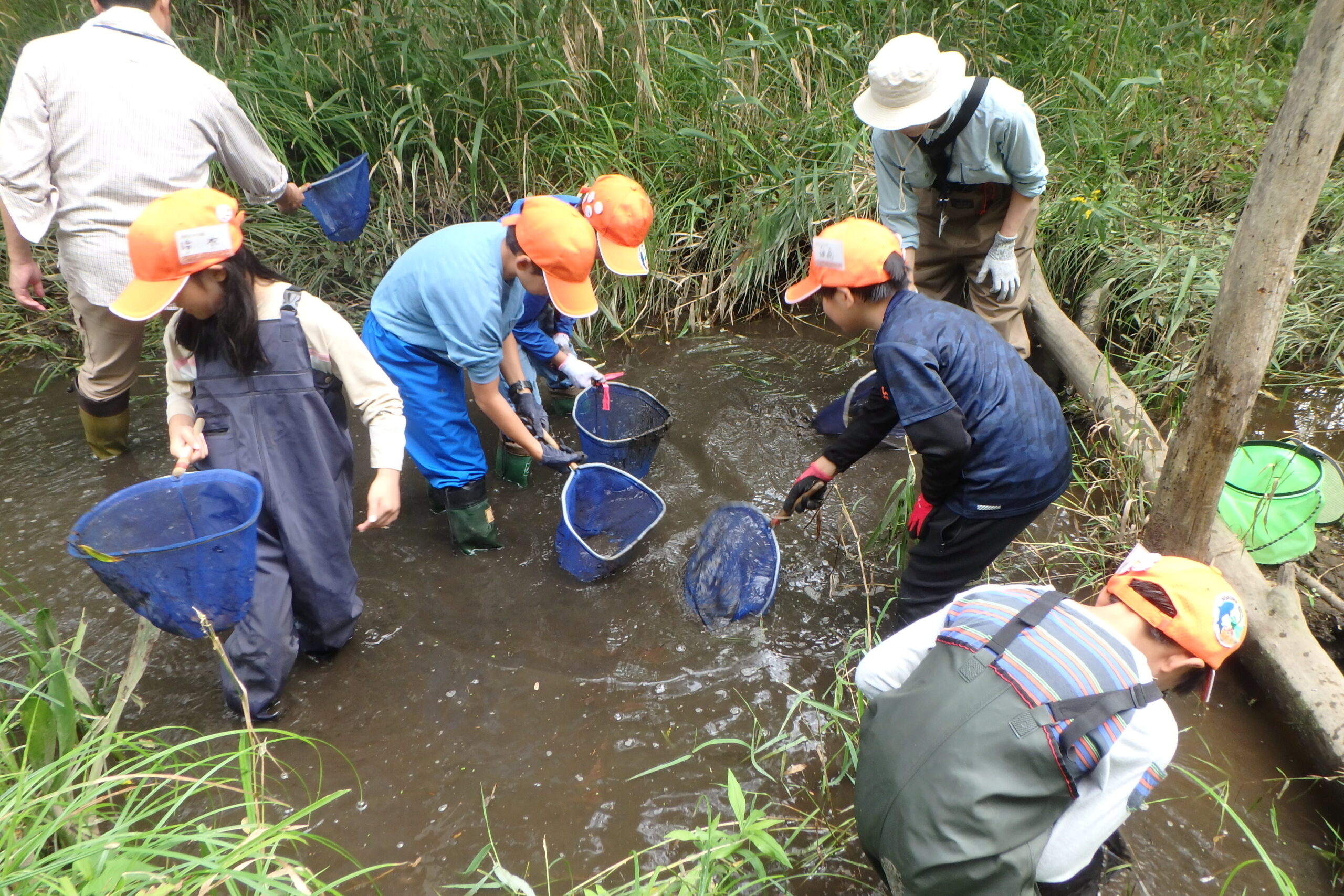 水環境が豊かな西岡公園で、水生生物の調査を行う「西岡さかな組」の