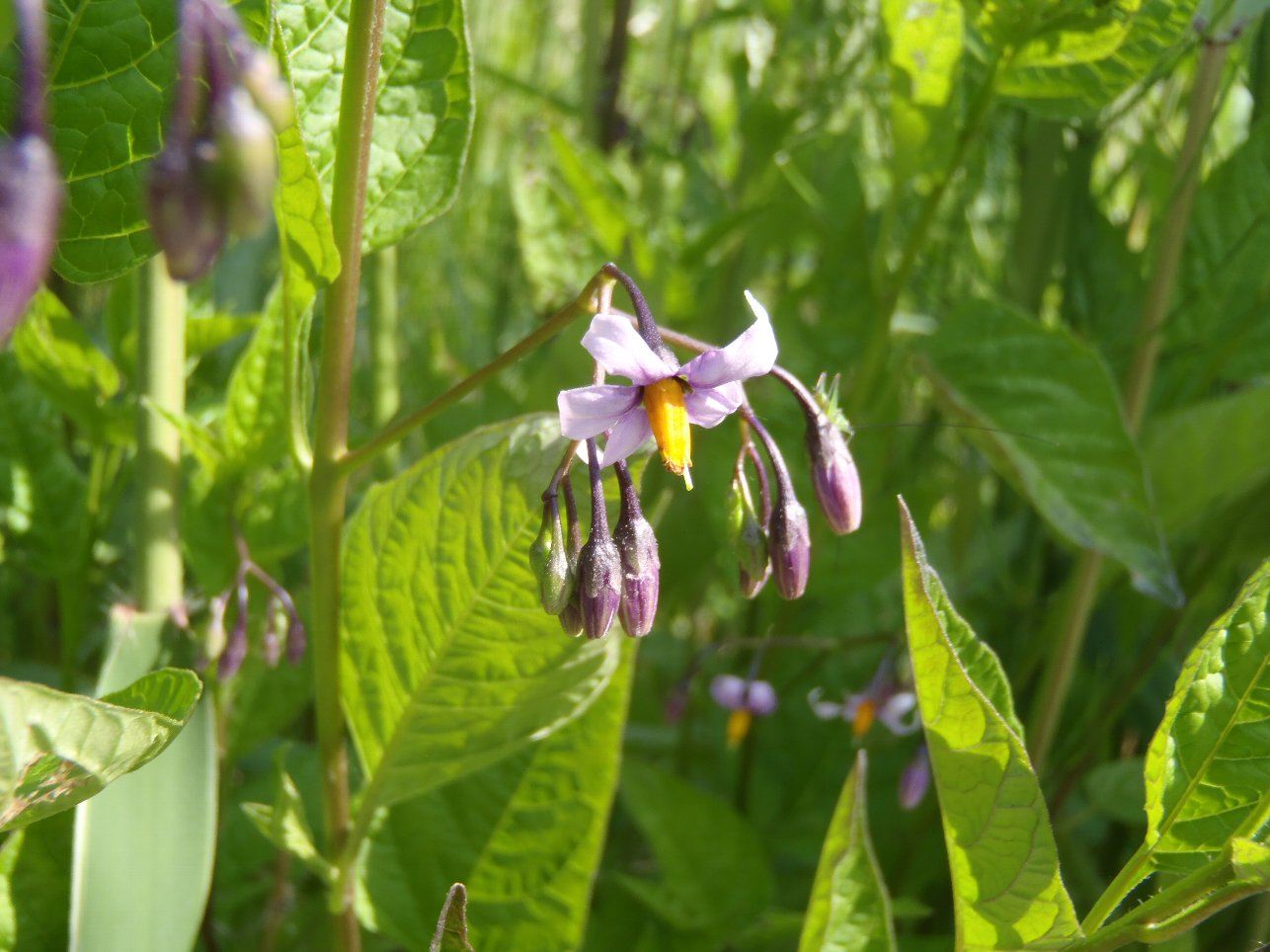 オオマルバノホロシは今、湿地で咲いているのが見られます。青むらさき色で花びらが反り返っている花で、木道と同じくらいの位置で咲いています。他にも湿地ではミゾホオズキやキンミズヒキオオハナウドなどが咲いていますよ。