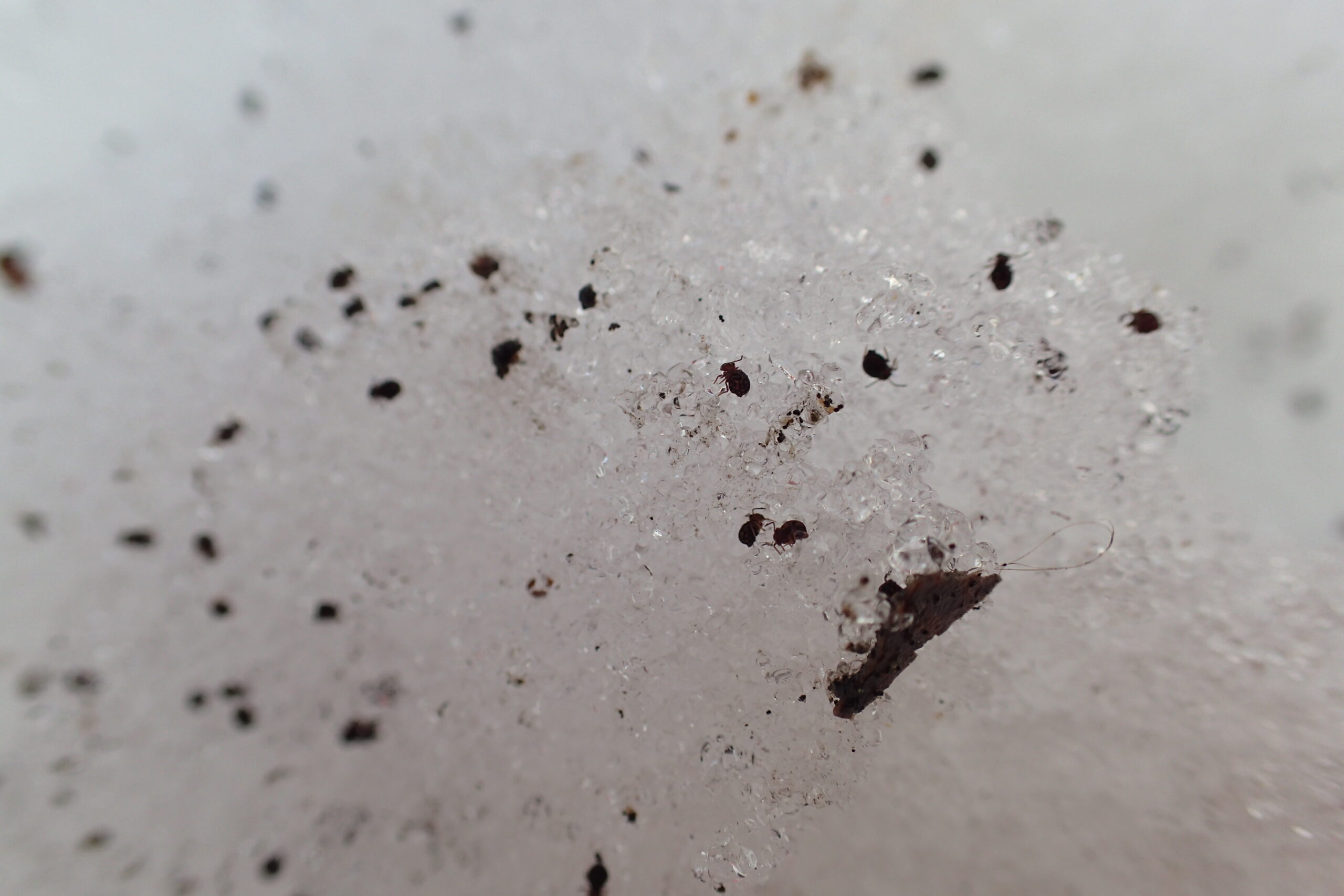 落ちていたヤドリギの朽木の周りの雪の上には、一面に黒い小さな虫がたくさんいましたよ。