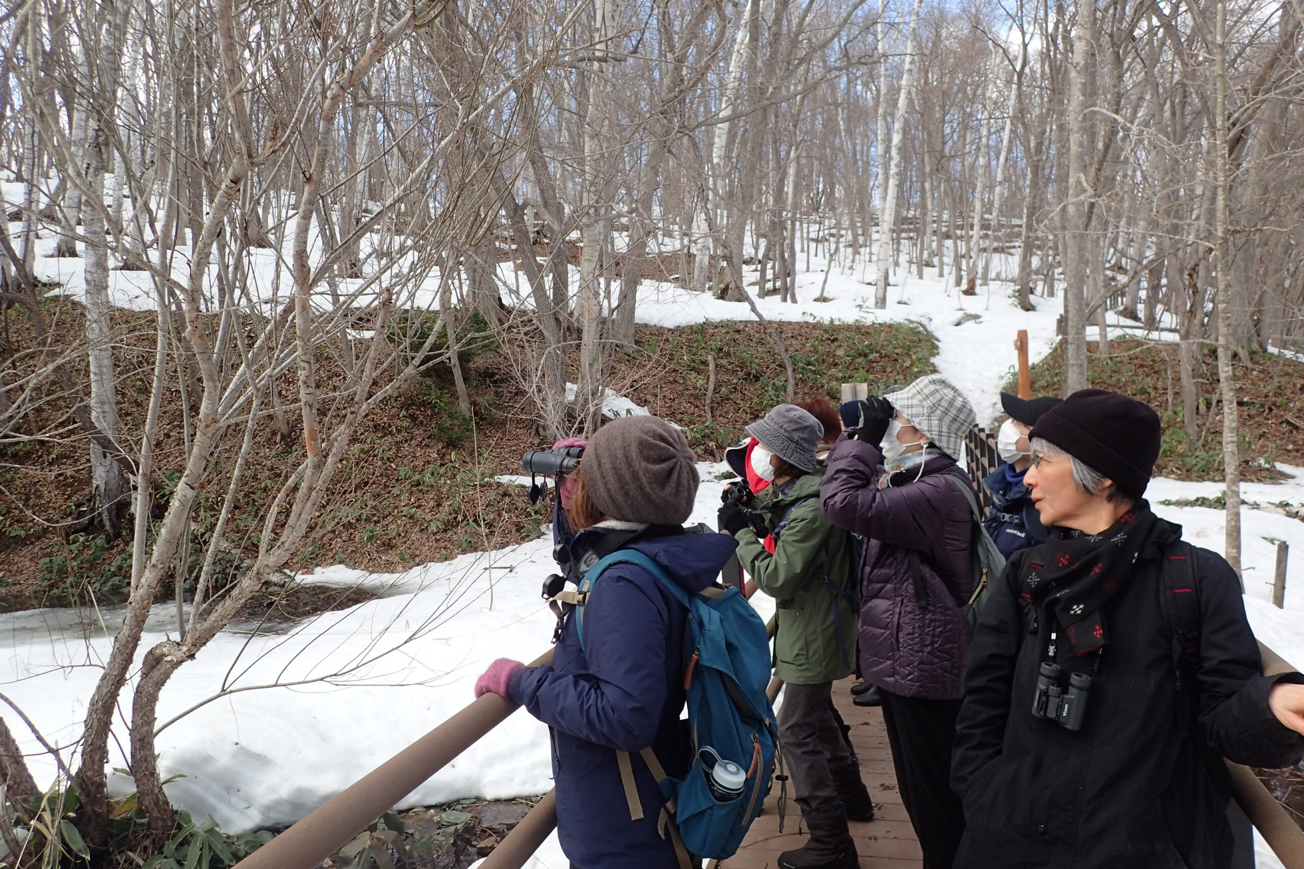 雪どけのこの季節には、シマエナガやキクイタダキなど普段は枝先にいる野鳥が、雪の上に降りている姿を見かけます。