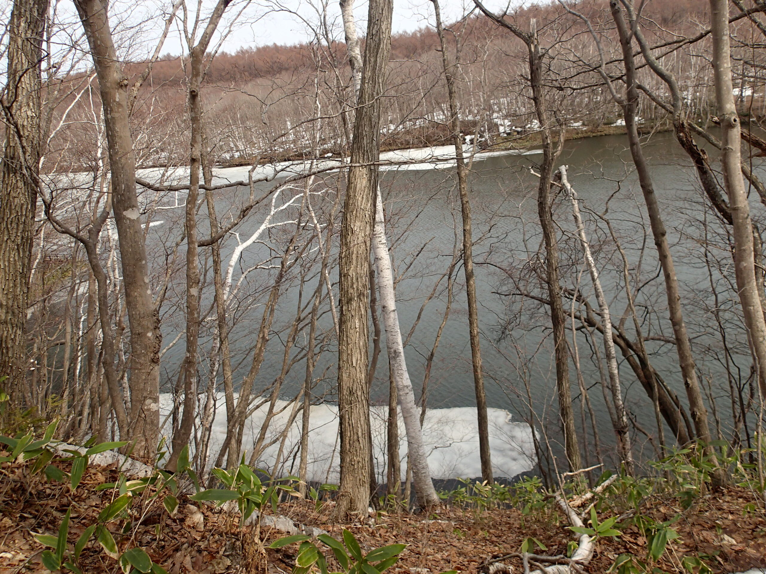 池は半分くらい氷が融けて水面が見え始めていましたよ。