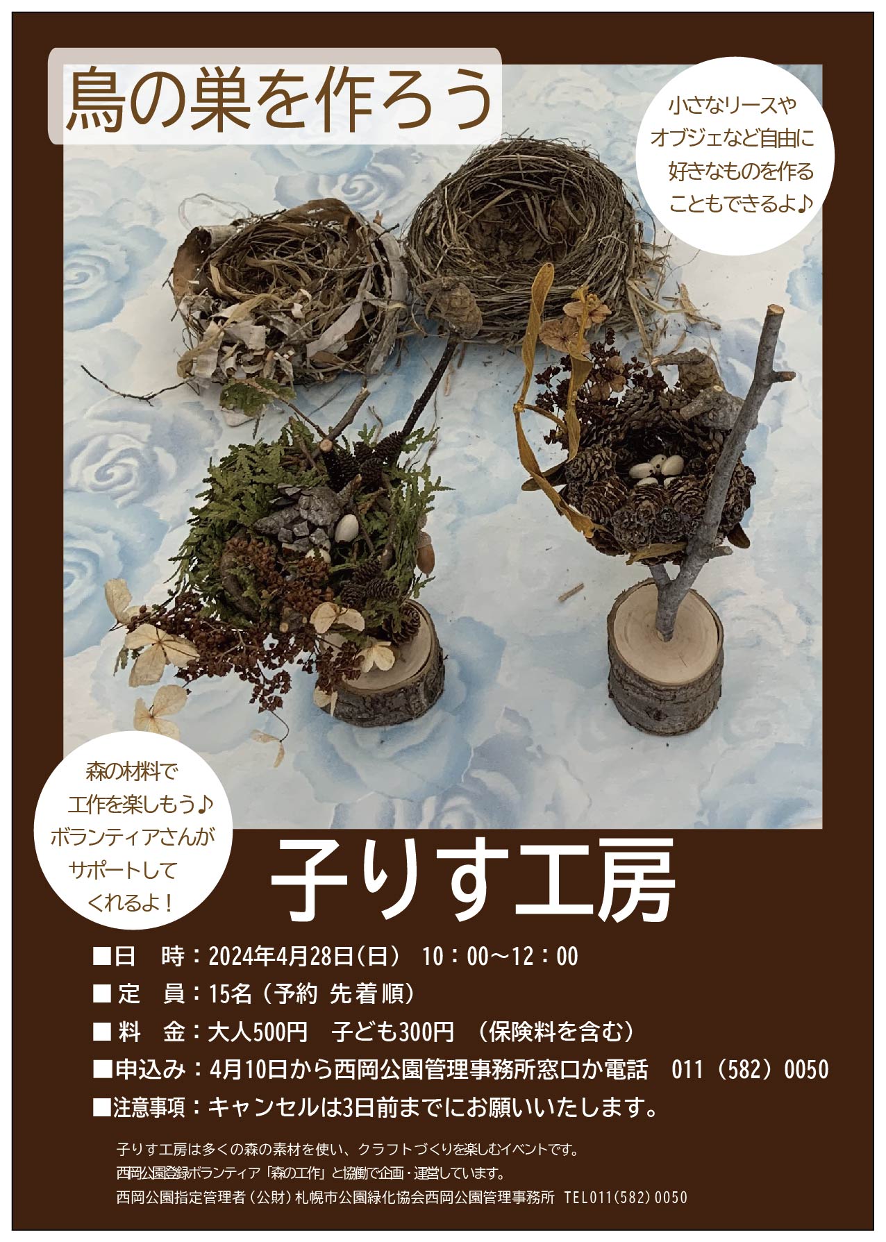 そんな西岡公園では「子りす工房」を開催しますよ。