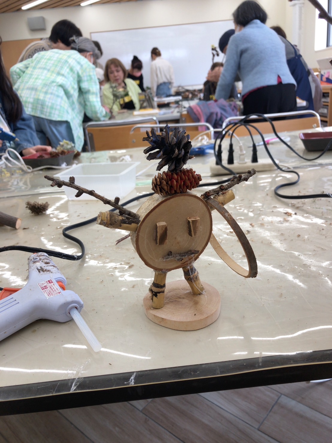 樹の輪切りを組み合わせてかわいい作品が出来ました。