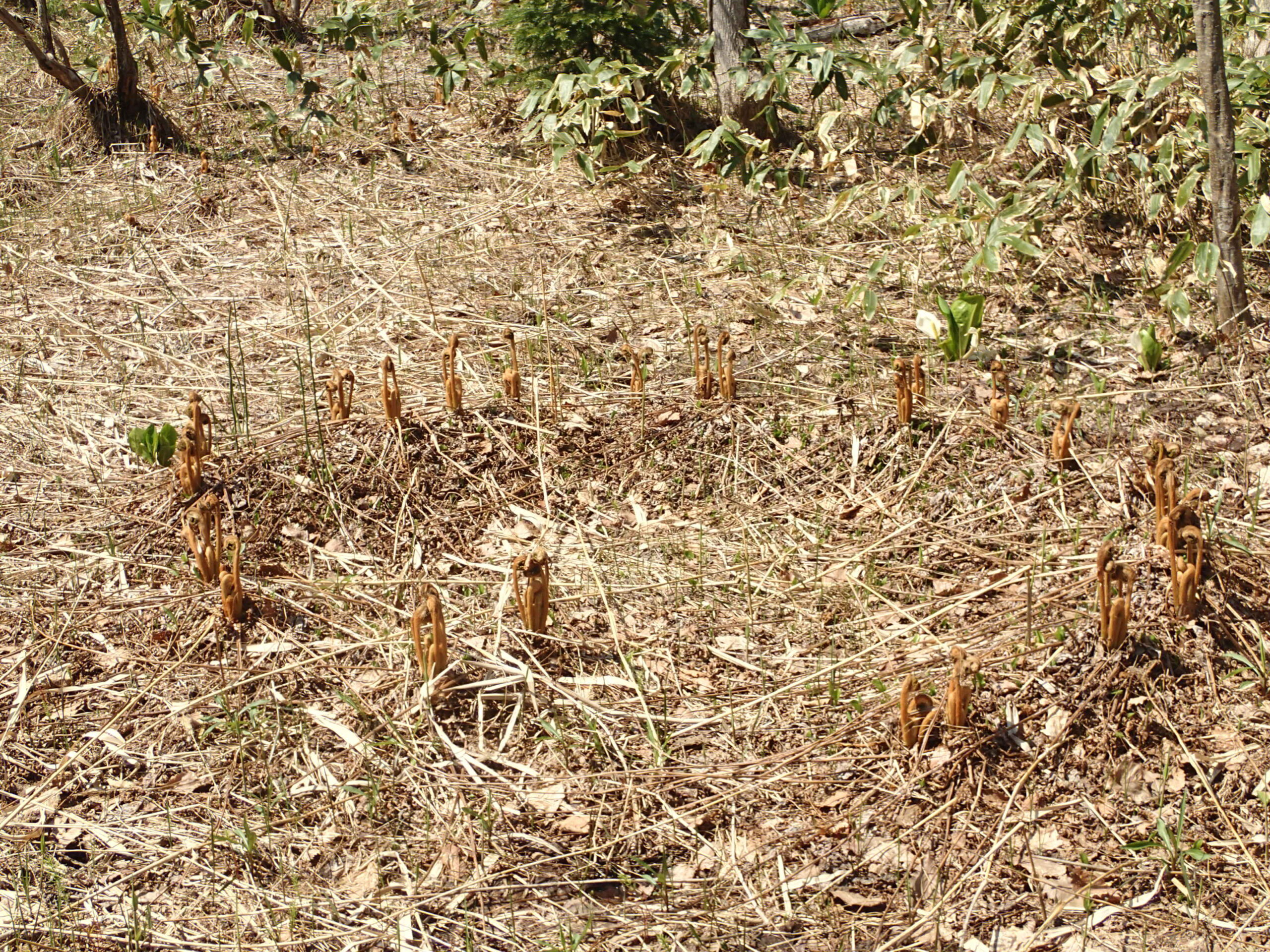 イヌガンソクや、コウヤワラビ、オシダなどのシダの仲間たちの芽出しも観察出来ましたよ。
