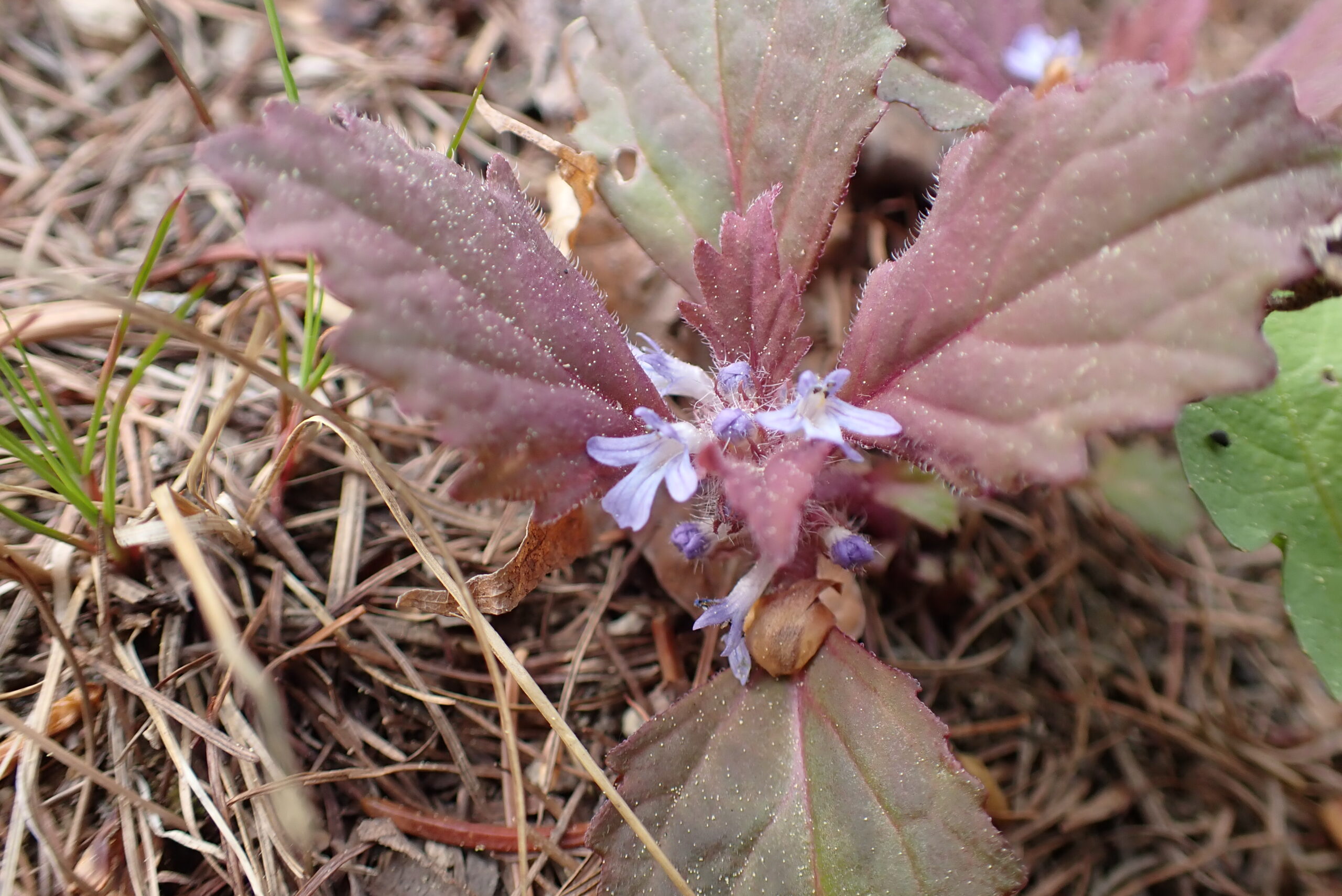 ニシキゴロモの紫色の葉と青い花も見つけましたよ。
