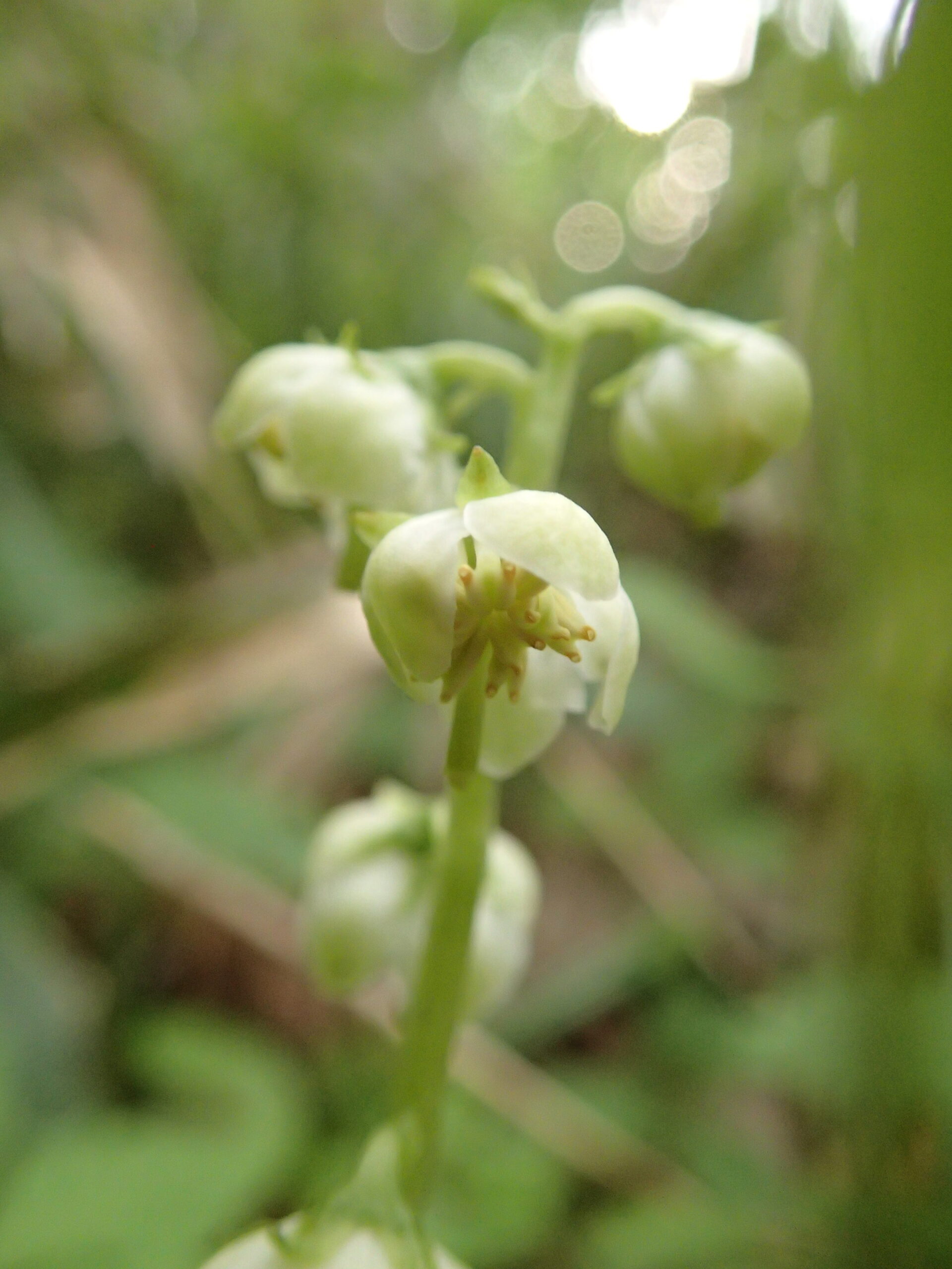 ころんとした白い下向きの花を付けた可愛らしいイチヤクソウも見つけましたよ。