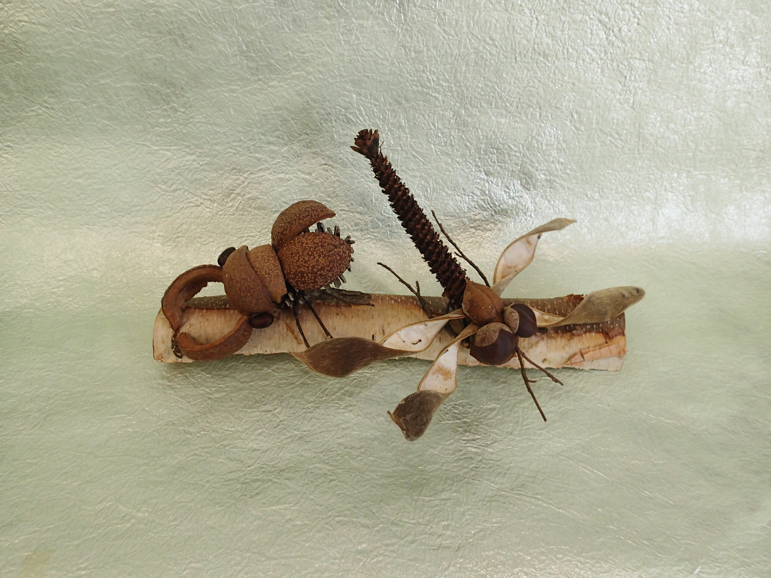 木の実や枝、貝殻などのふんだんな材料を使って使っていろいろな虫も作れますよ。