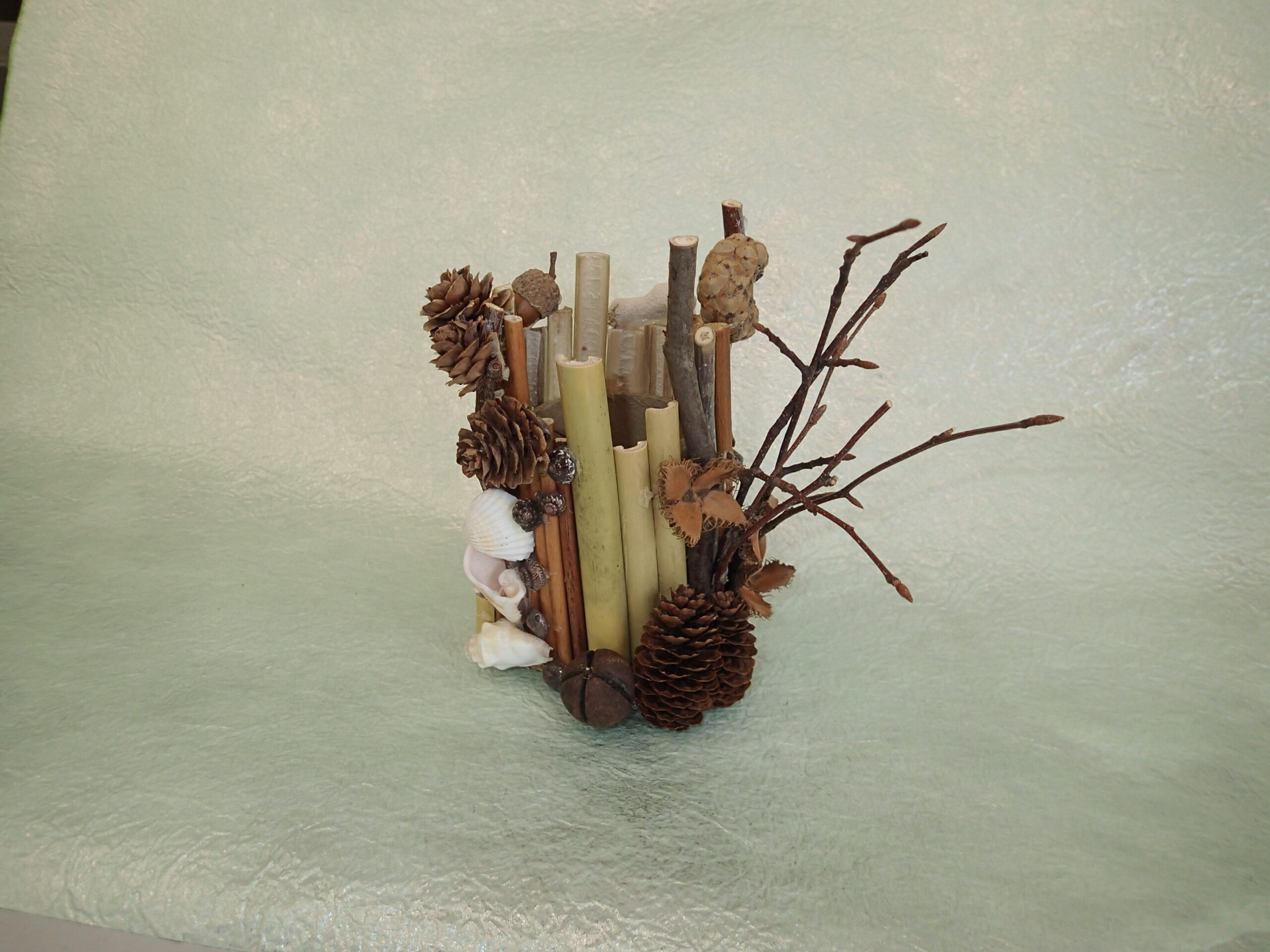 貝殻と木の実で作った鉛筆立ても作れますよ。