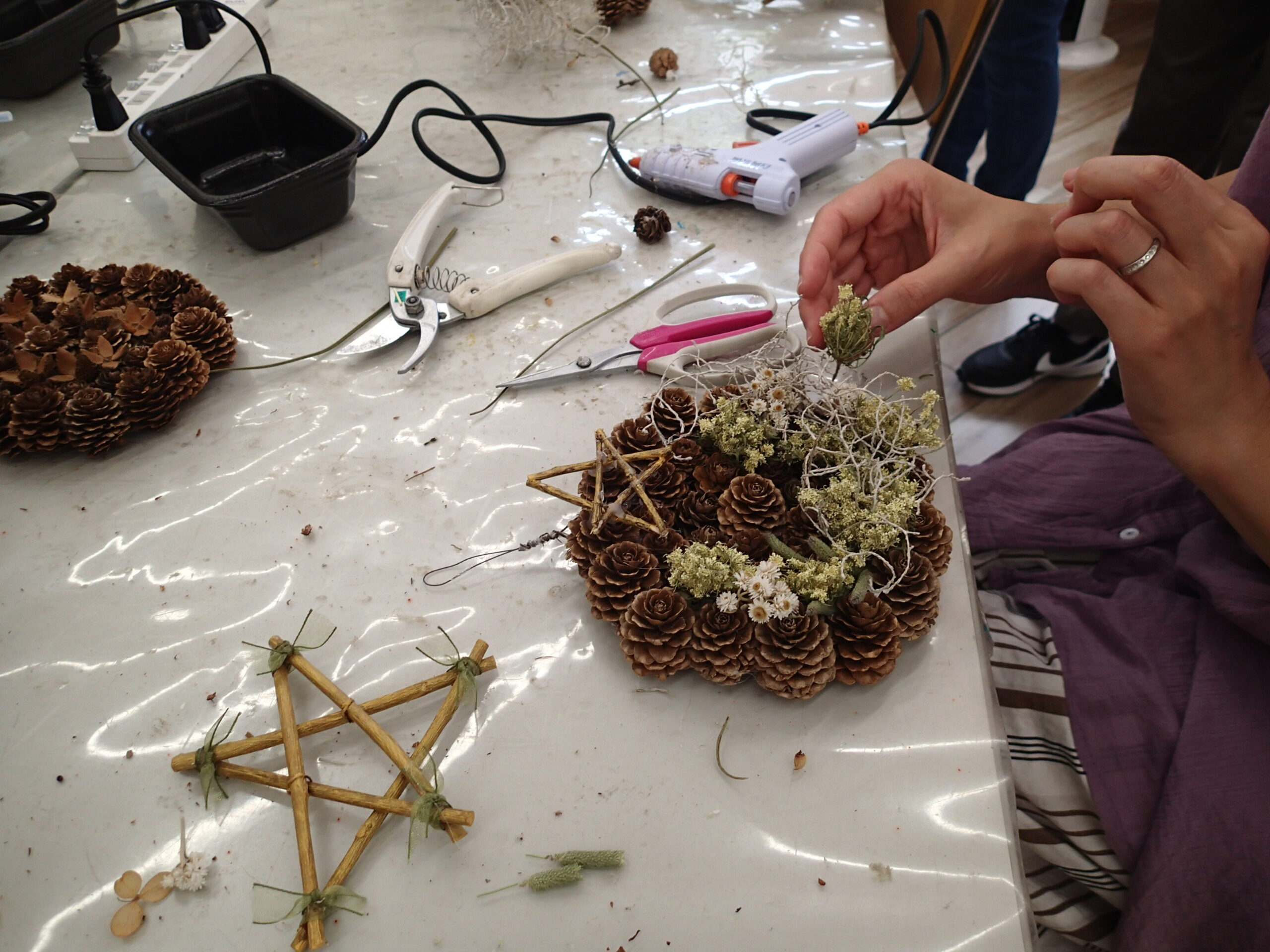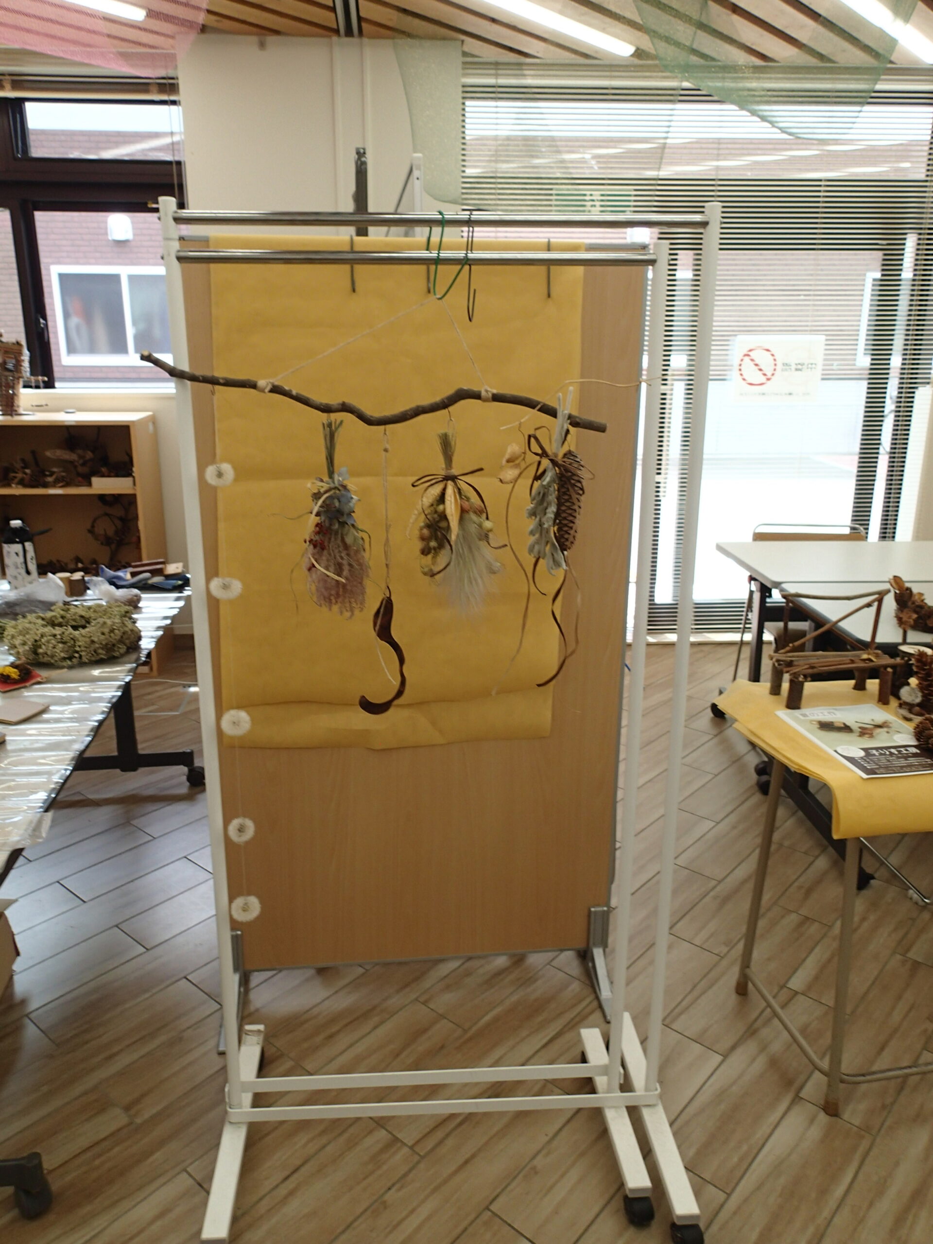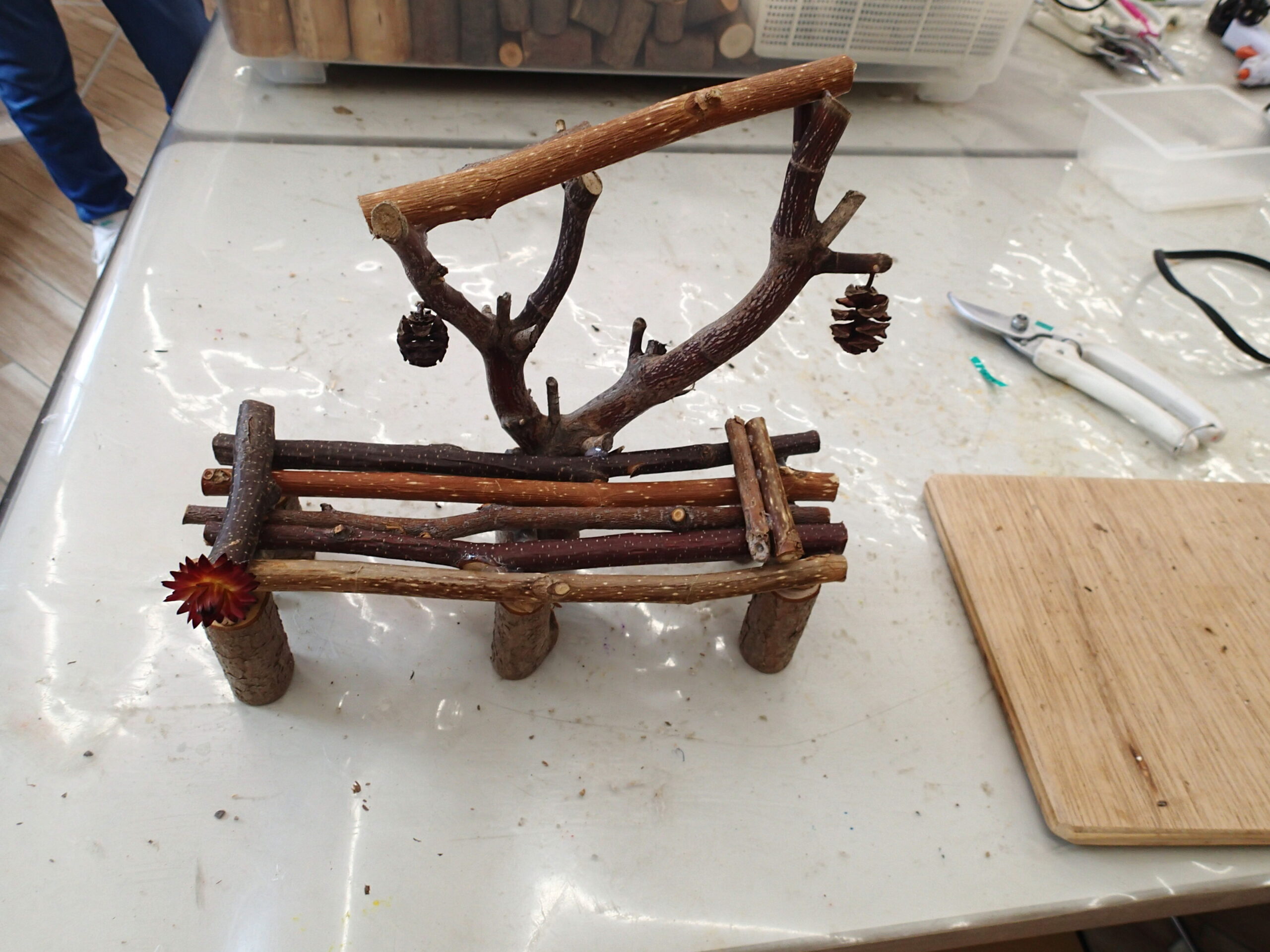 西岡公園のボランティア「森の工作」の皆さんが集めてくれた、ふんだんな材料を使いました。