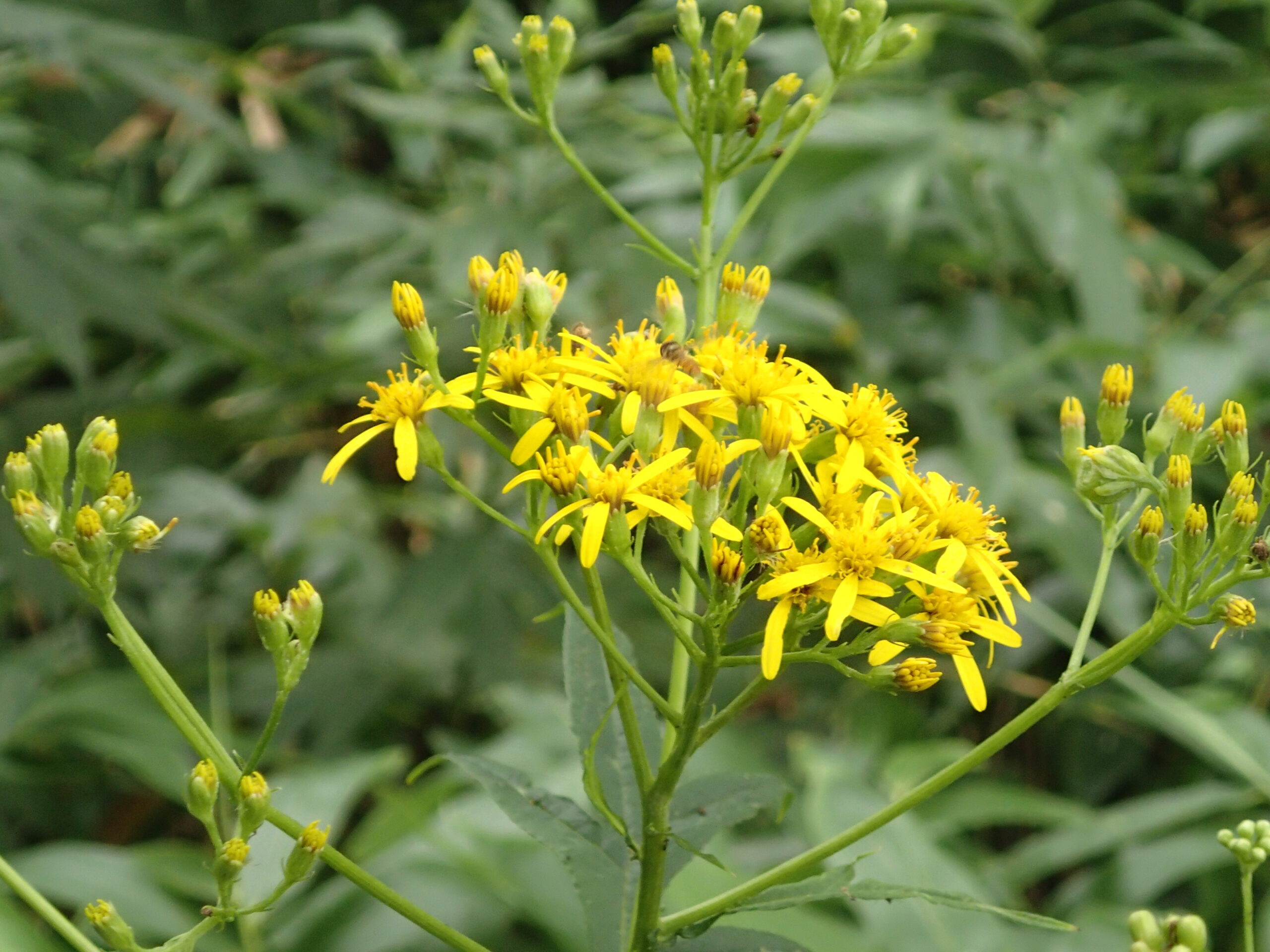 ハンゴンソウの黄色い色が湿原にポツポツ咲き始めましたよ。