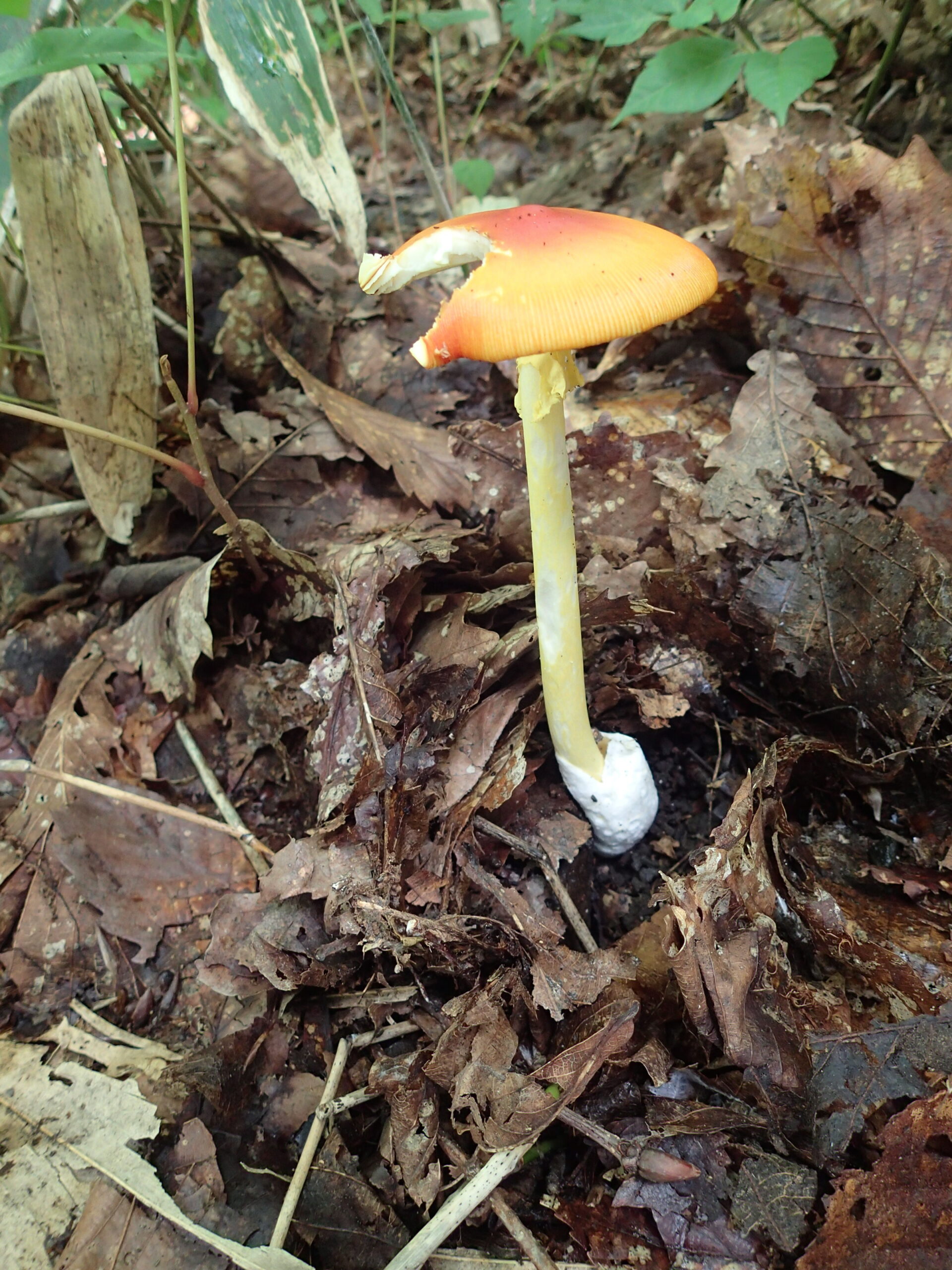 タマゴタケの由来は、根元に見えている白い卵型の袋からですよ。