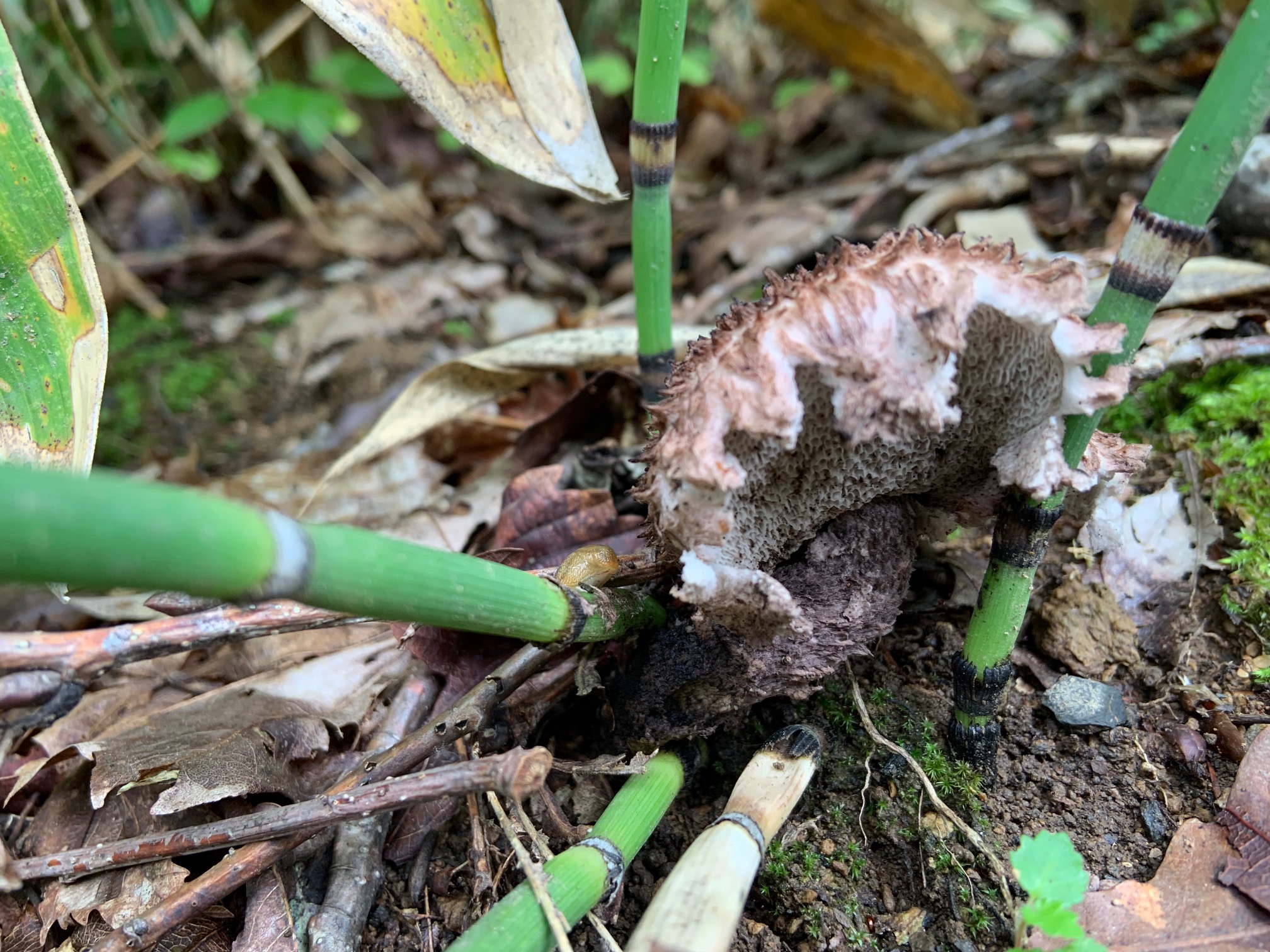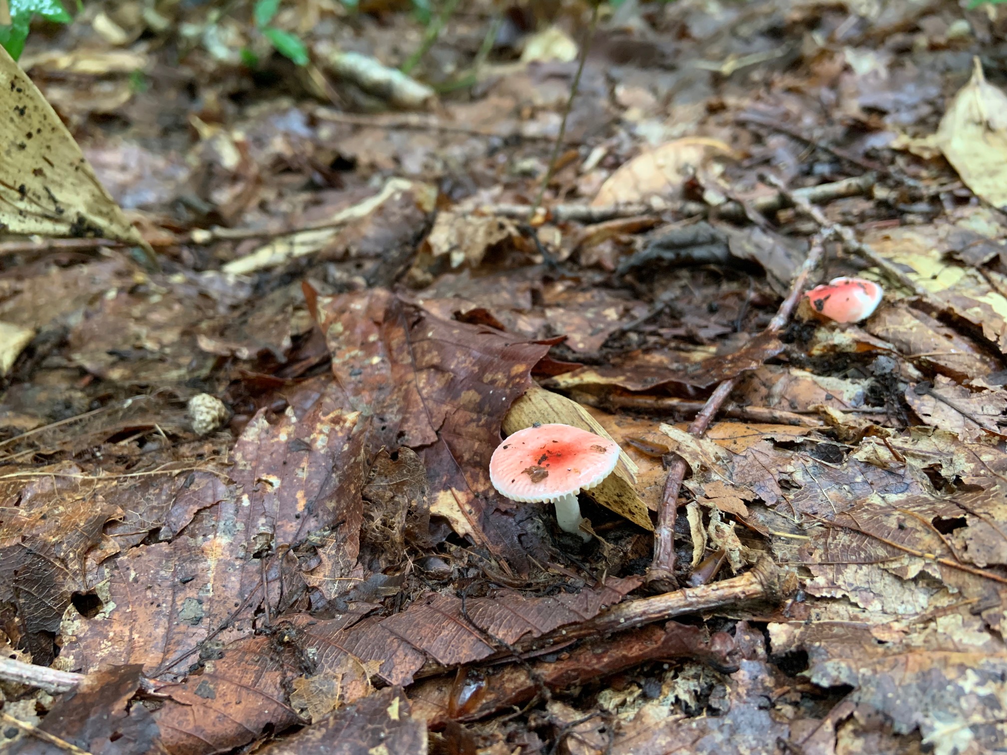 今日は、いろいろな形と色どりのキノコたちに出会いましたよ。