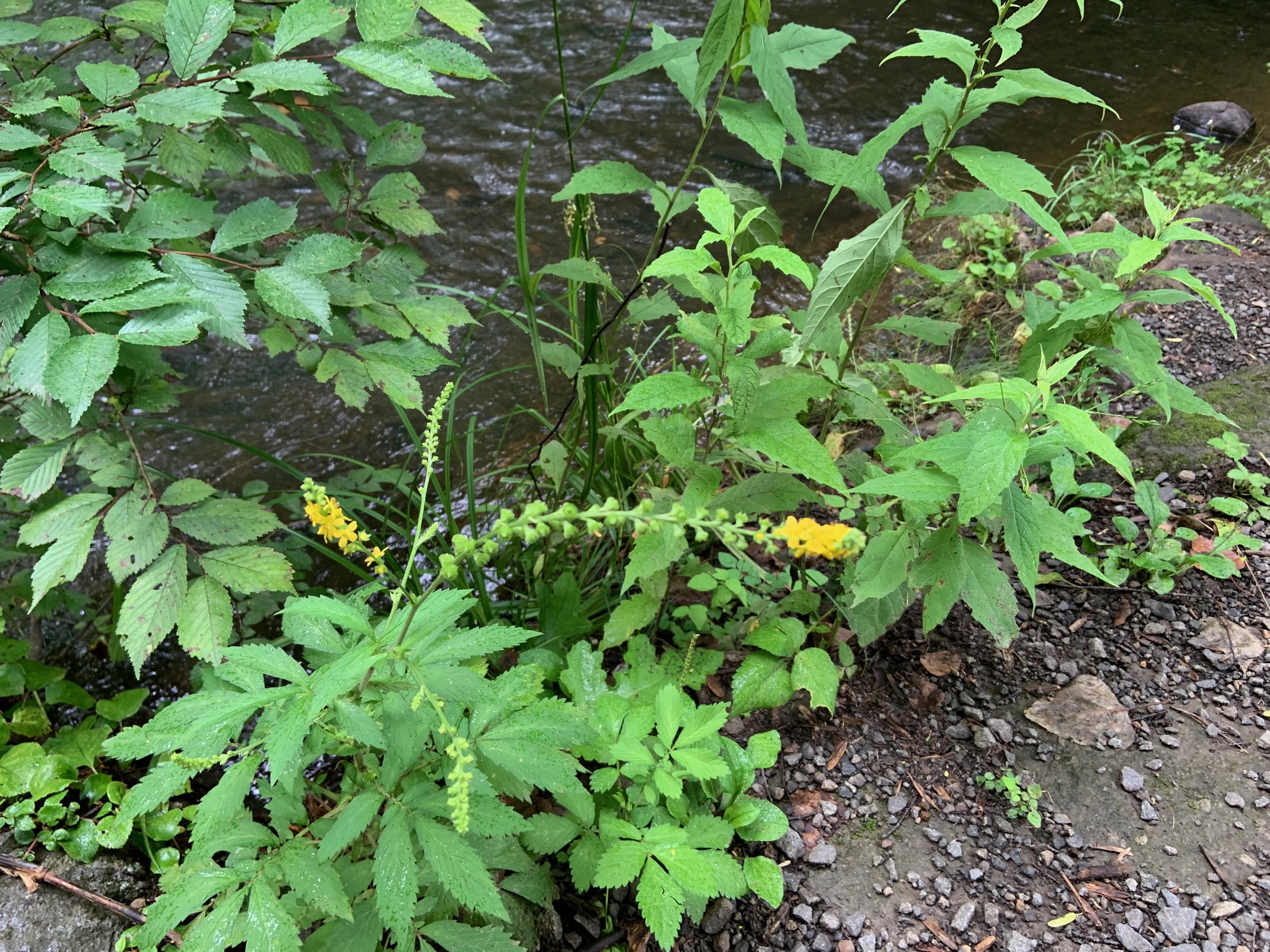 キンミズヒキの黄色い花が足元にひっそり咲いていますよ。