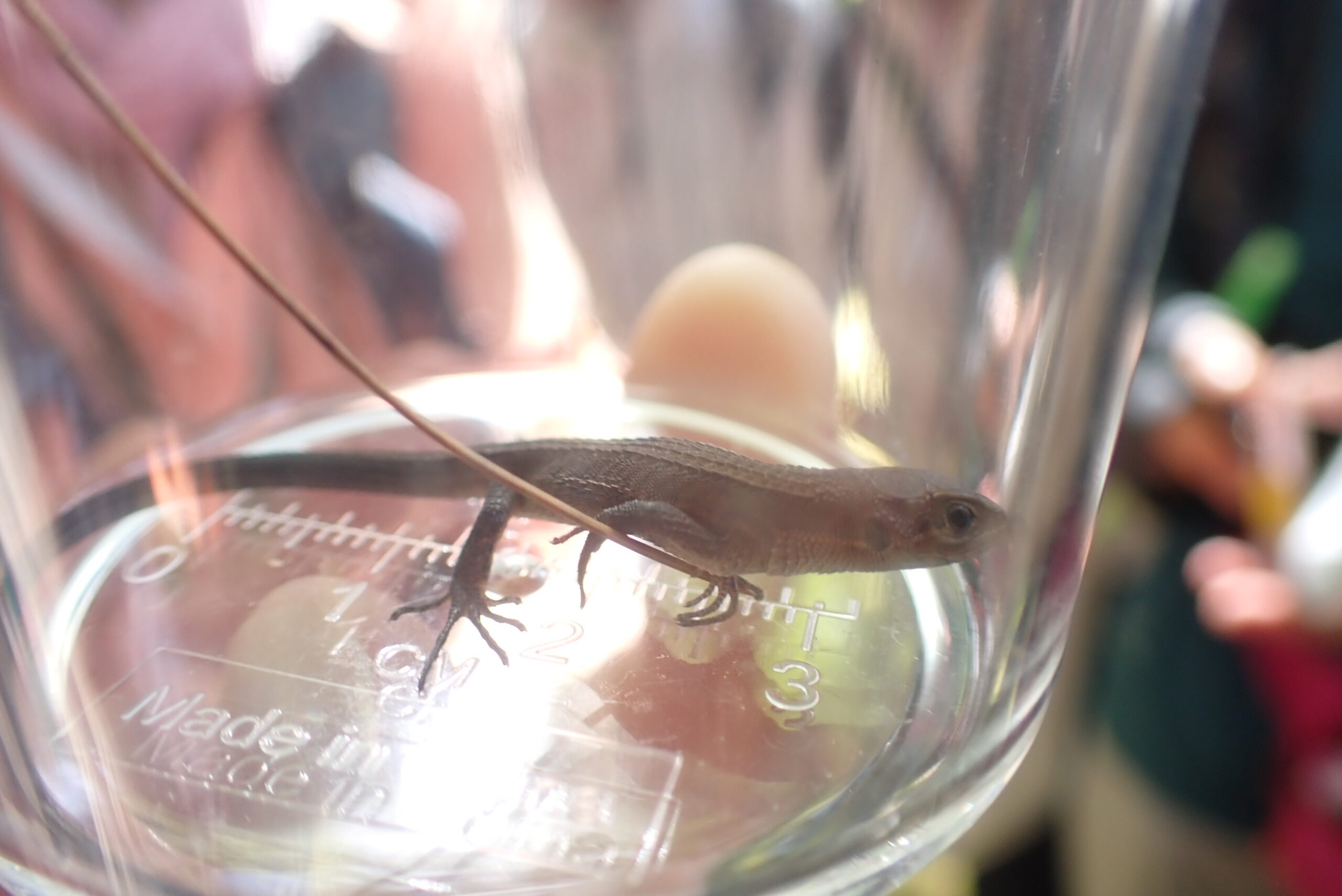 草地には、今年生まれのニホンカナヘビたちがたくさんいました。