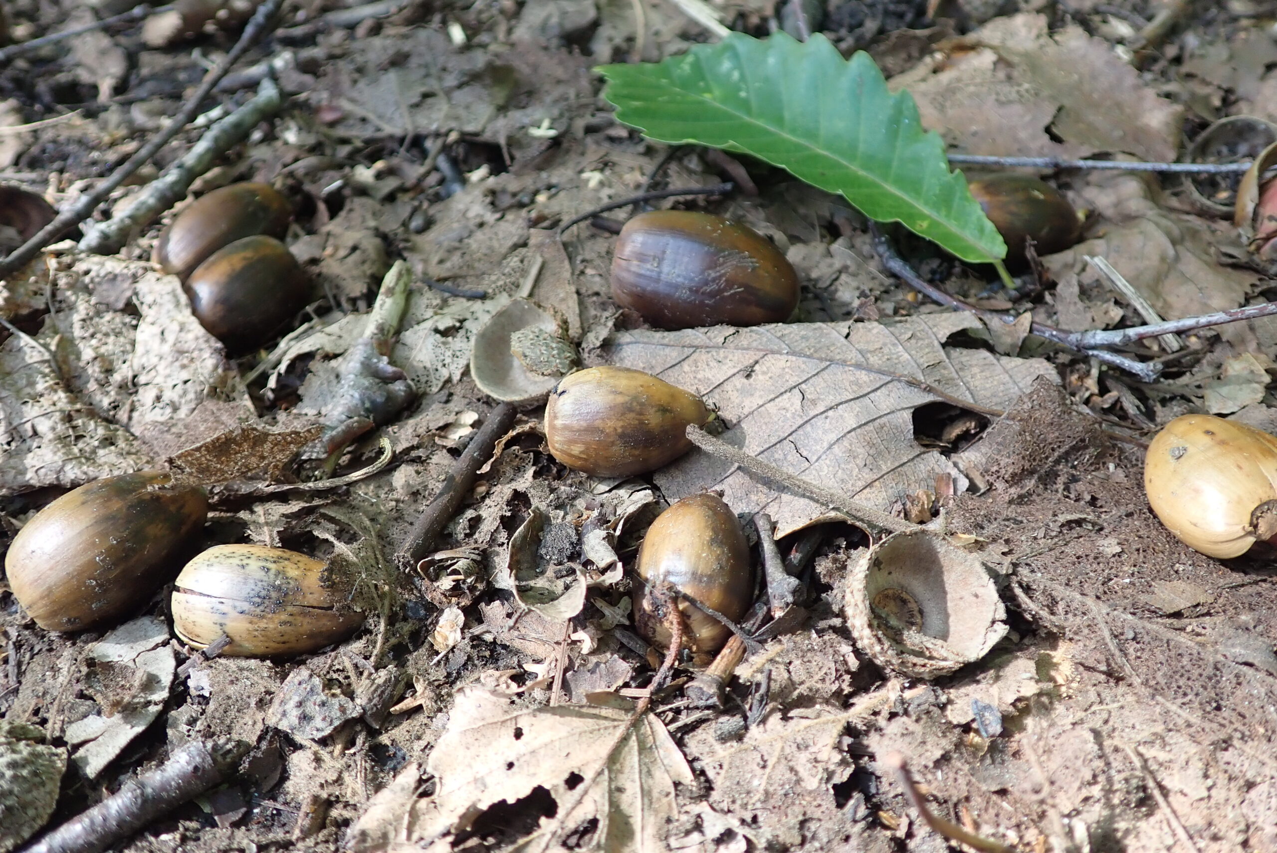 園路には一面ミズナラのドングリが落ちています。