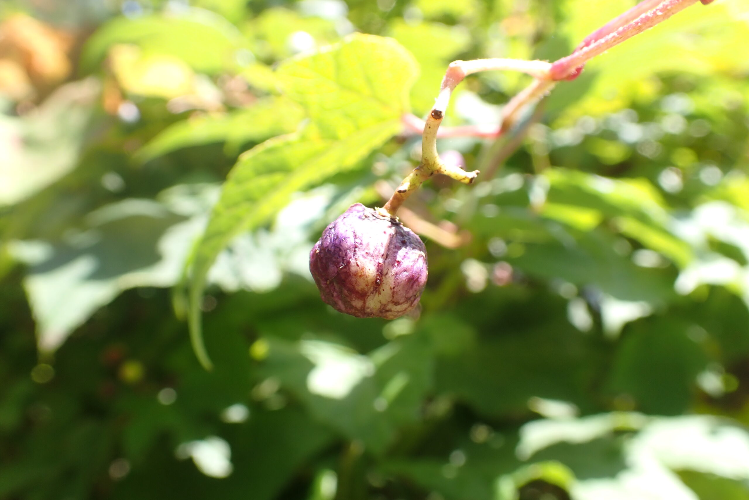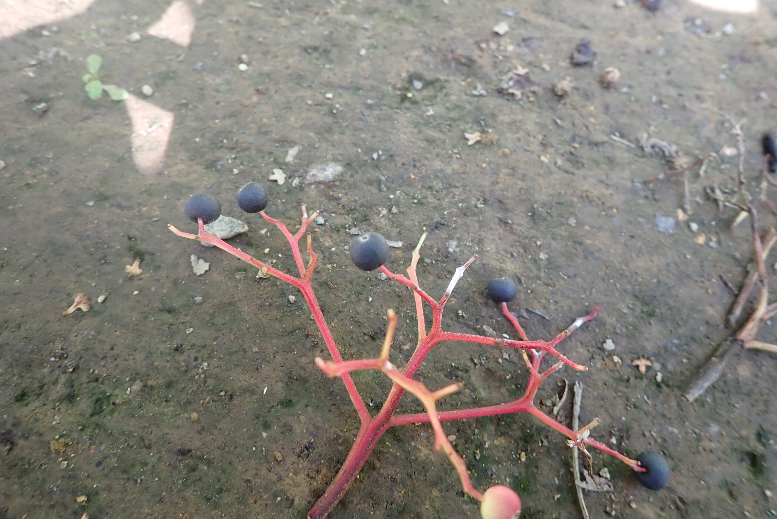 赤い茎に黒い果実のコントラストが鮮やかです。