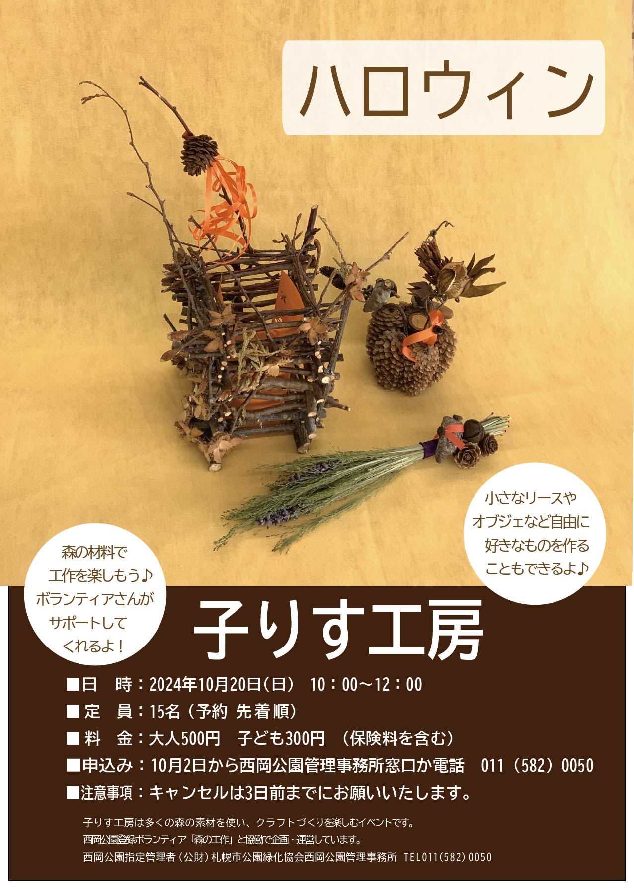 そんな西岡公園では「子りす工房」を開催しますよ。