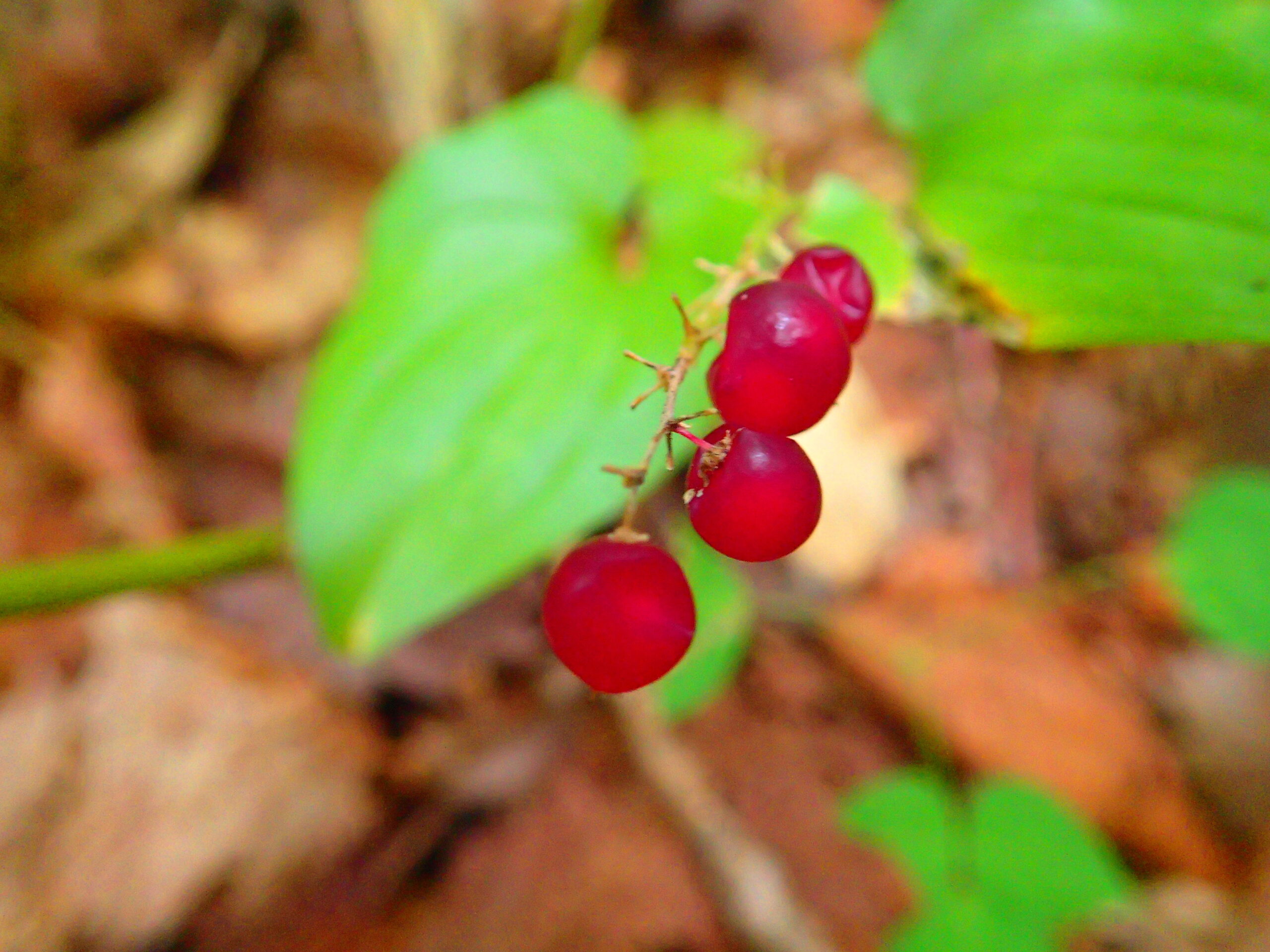 透明感のある赤いマイヅルソウの果実もきれいです。