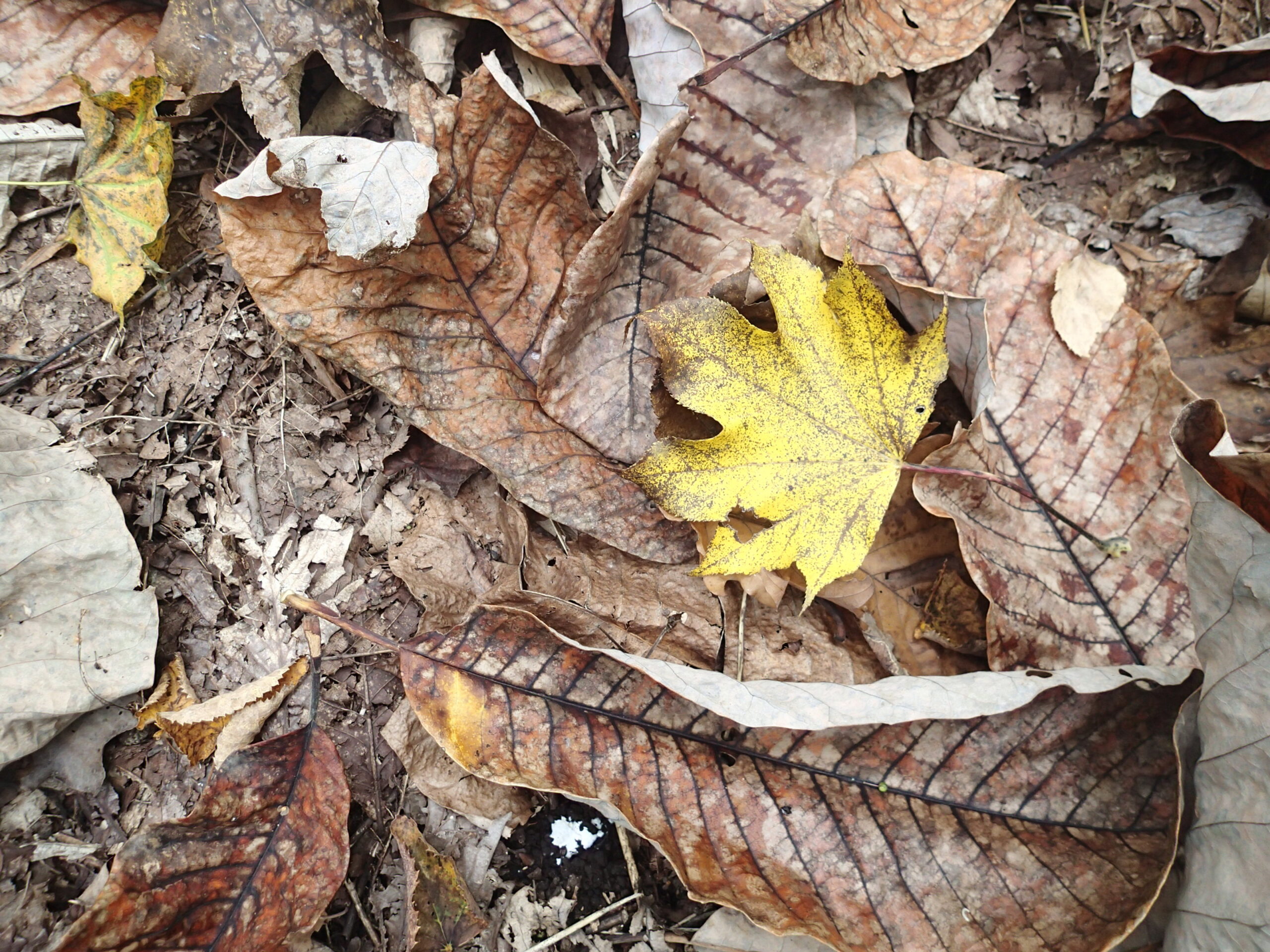 大きな落ち葉や、黄色い落ち葉も、落ちていますよ。