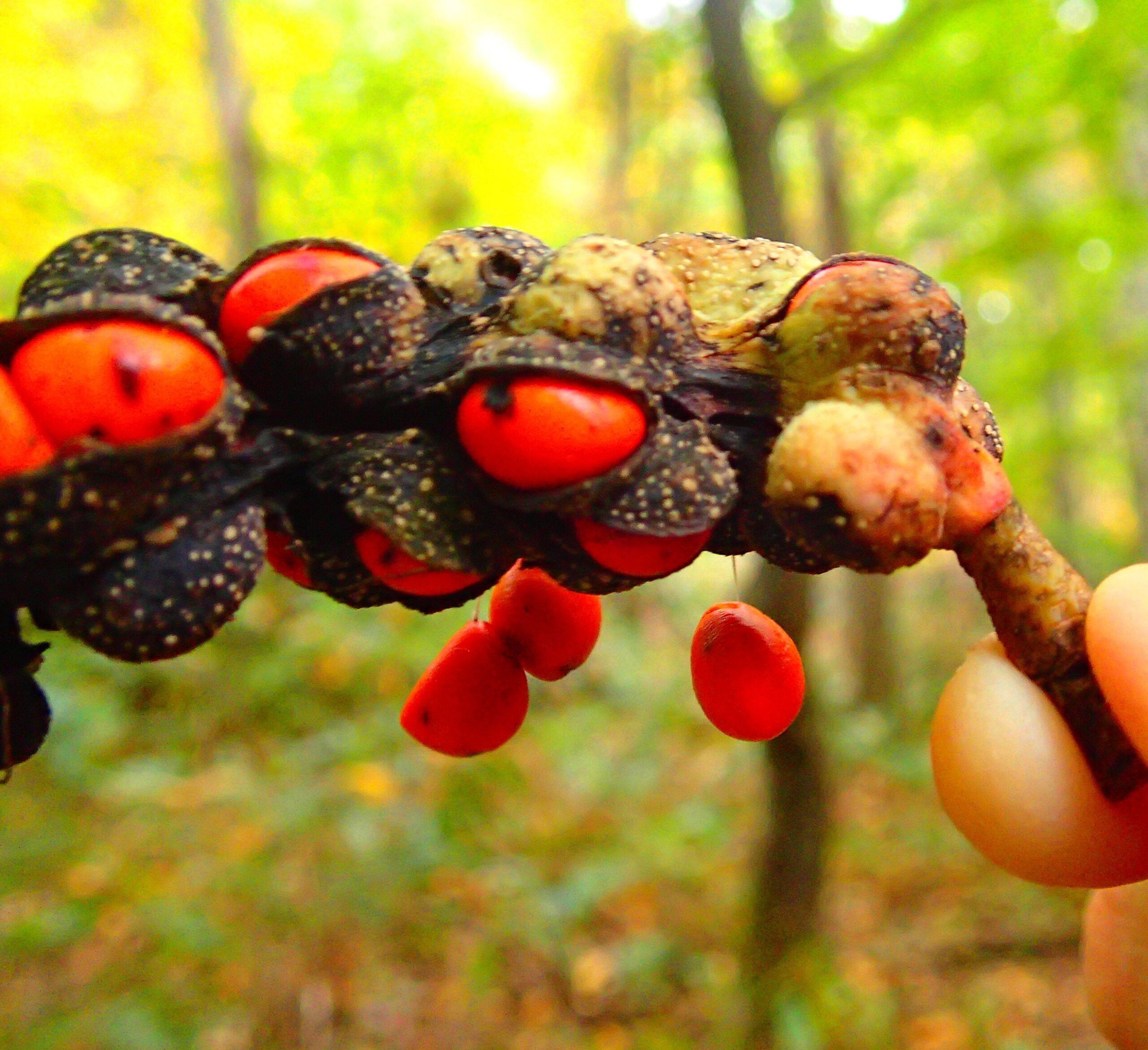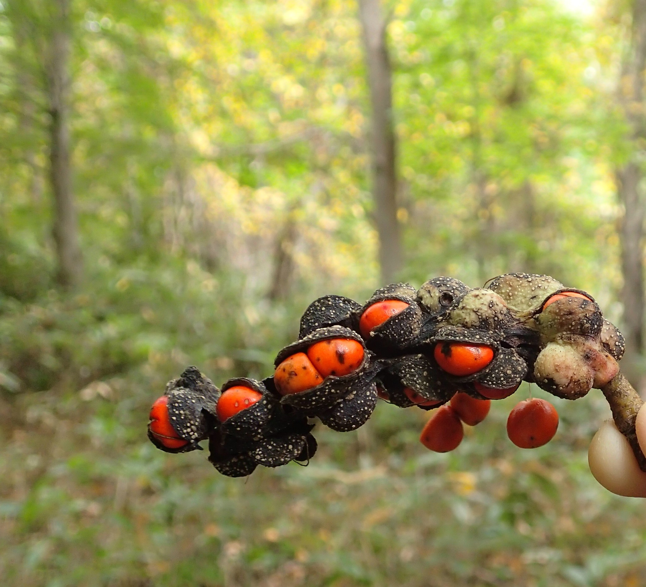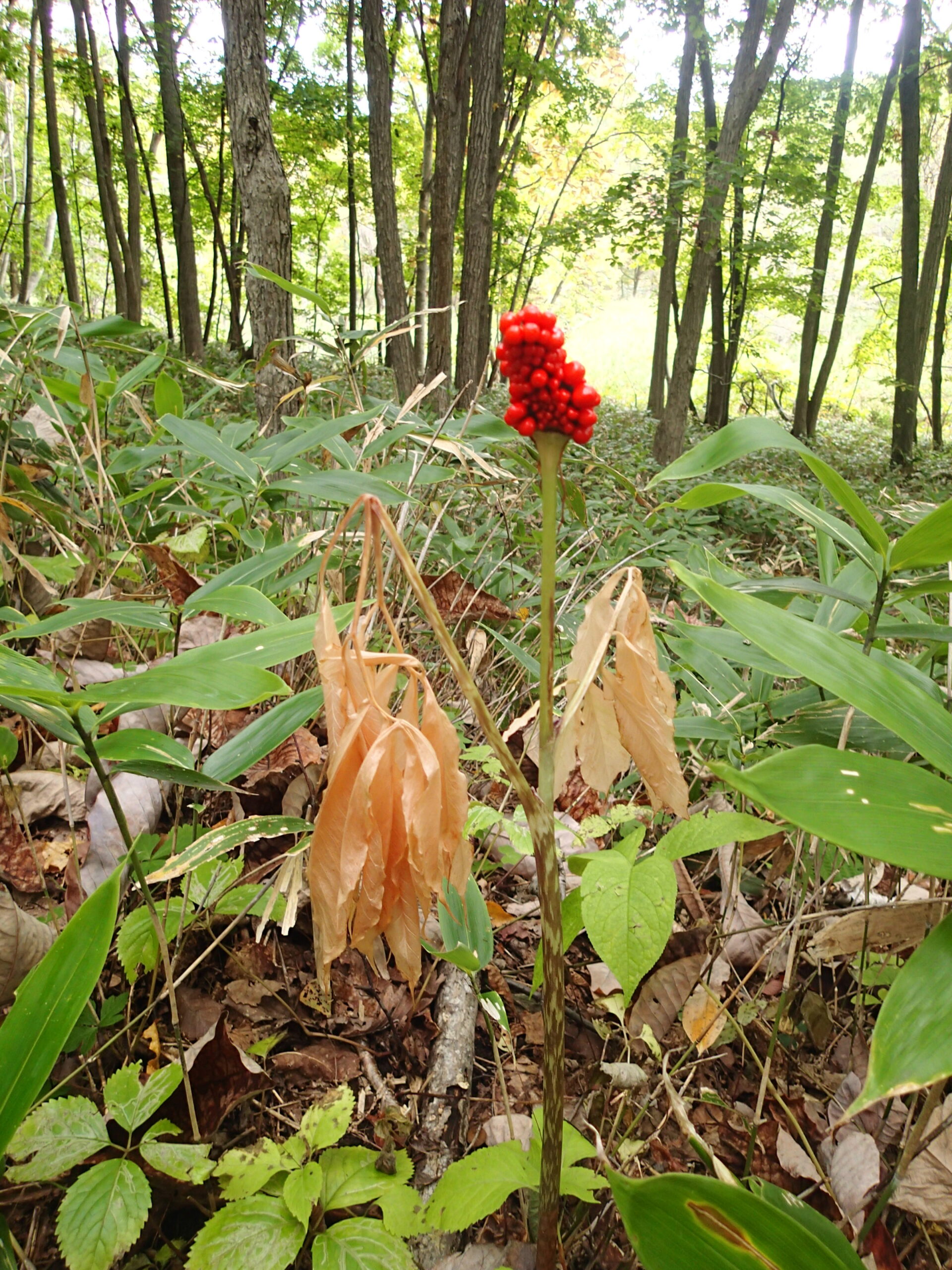 同じく赤い果実でも、こちらマムシグサは大きくて毒々しい印象です。