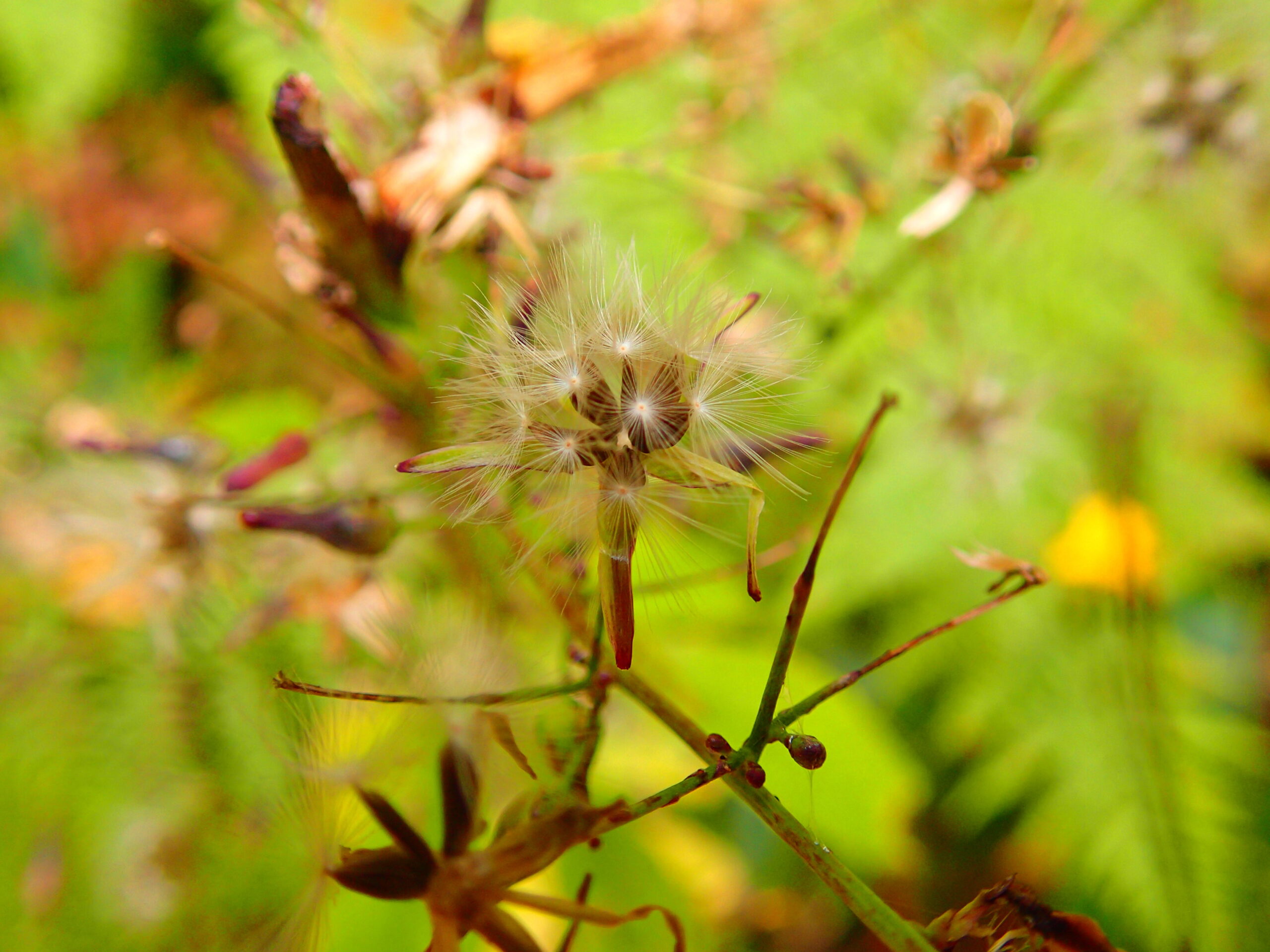 フワフワの冠毛のついているヤマニガナの果実をよくみると、黒い種が6つきれいに並んでいます。