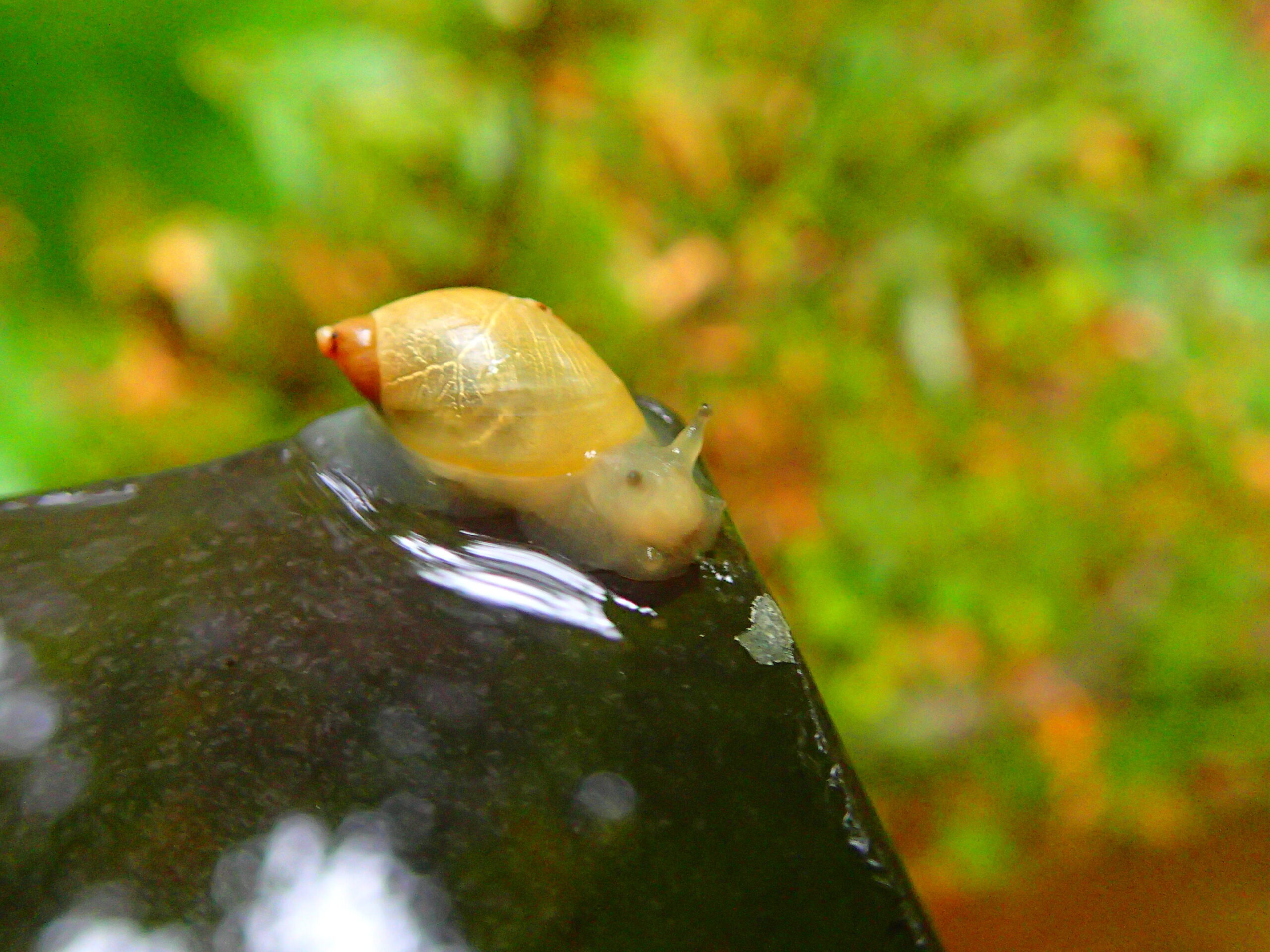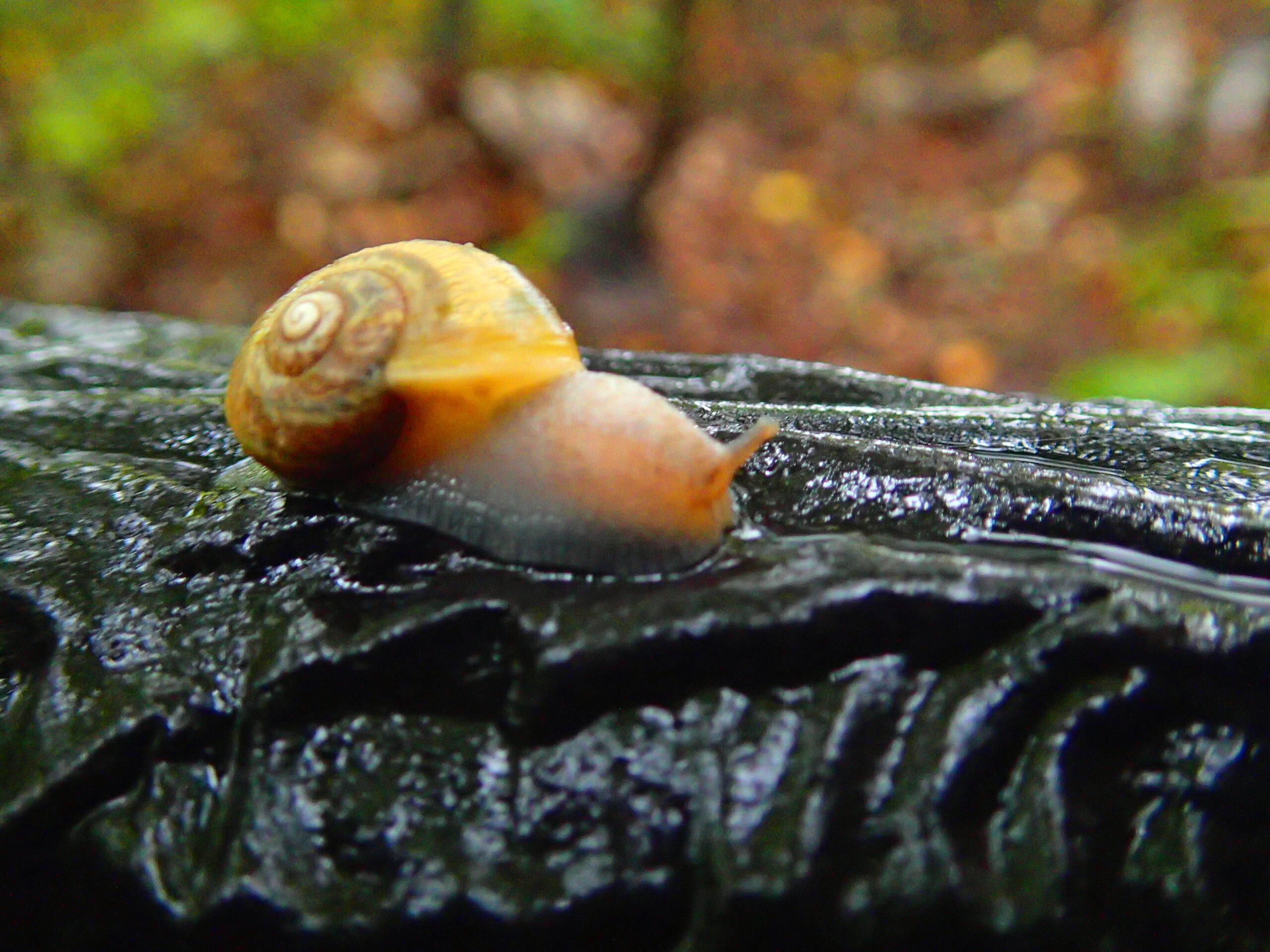 小雨が降ったりやんだりです。こんな日はツノを出して歩くカタツムリたちに出会えるチャンス。