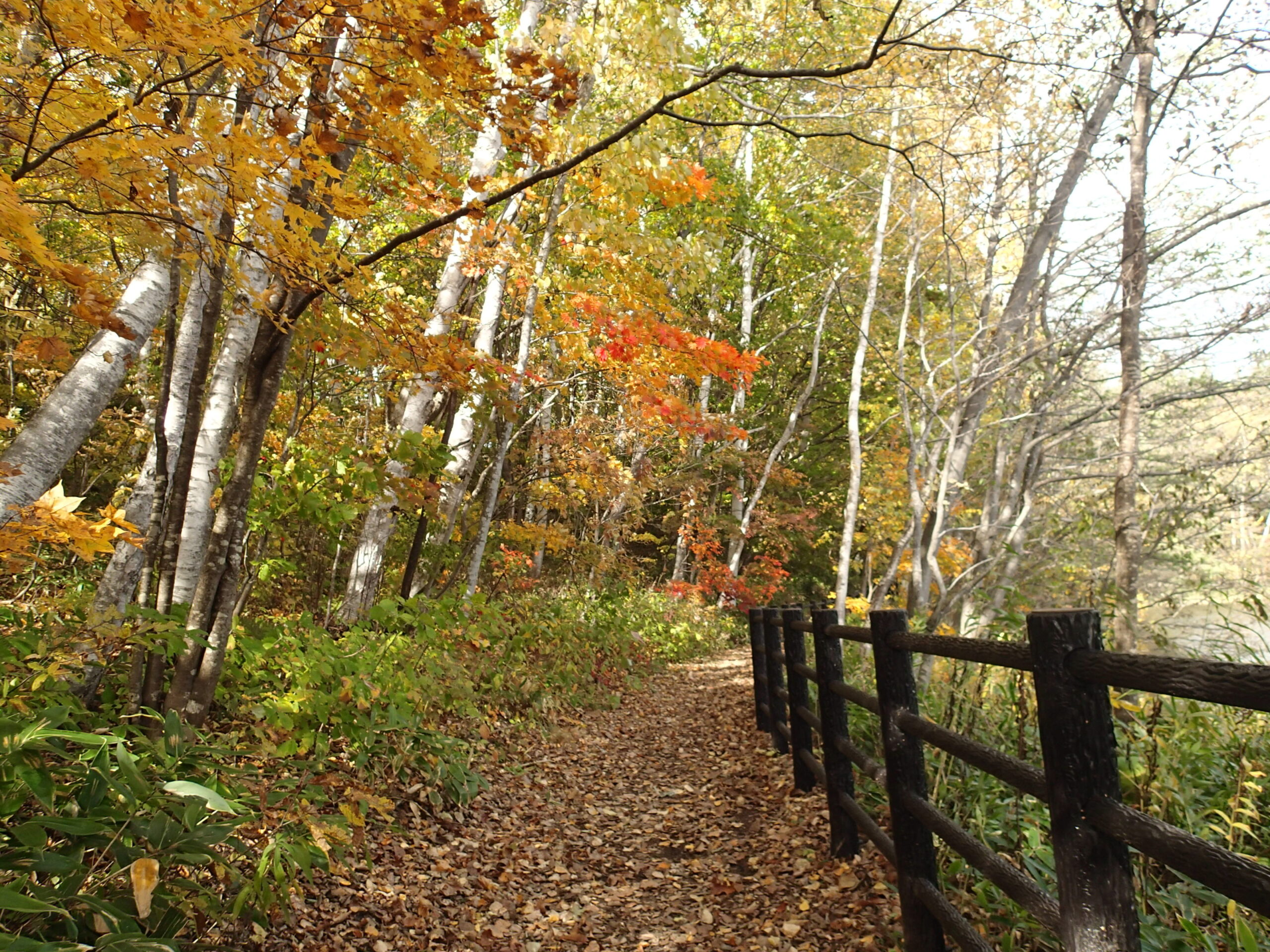 園路を歩くと足の裏に落ち葉のフワフワした感触が楽しめます。