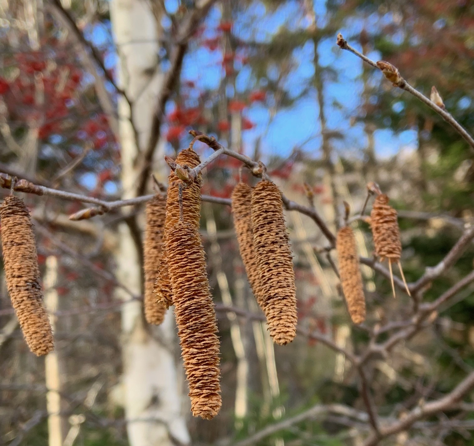 シラカンバの果穂がぶらさがっています。
